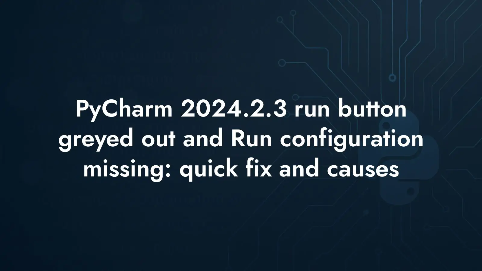 You open a Python project in PyCharm 2024.2.3 Pro, but the run triangle stays greyed out. In Run → Edit Configurations… you can still select Debug, Coverage, and Profile, yet the Run option itself is missing. Interpreter settings look fine. The code and environment haven’t changed. Still, the run action refuses to appear.