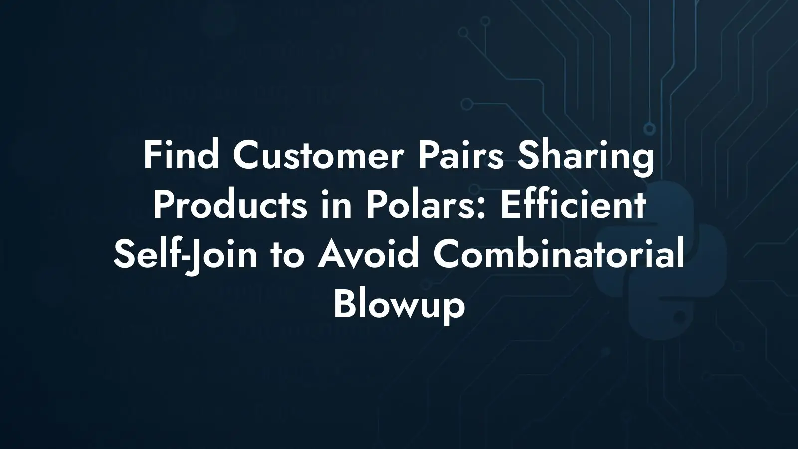 Finding all customer pairs who bought at least one common product is a classic co-occurrence problem. If you try to build pairs by enumerating all customers and then comparing their product sets, you hit a combinatorial wall fast. With Polars, you can push this work into a join that surfaces only the pairs that actually share a product, skipping the blow-up of generating everything first.