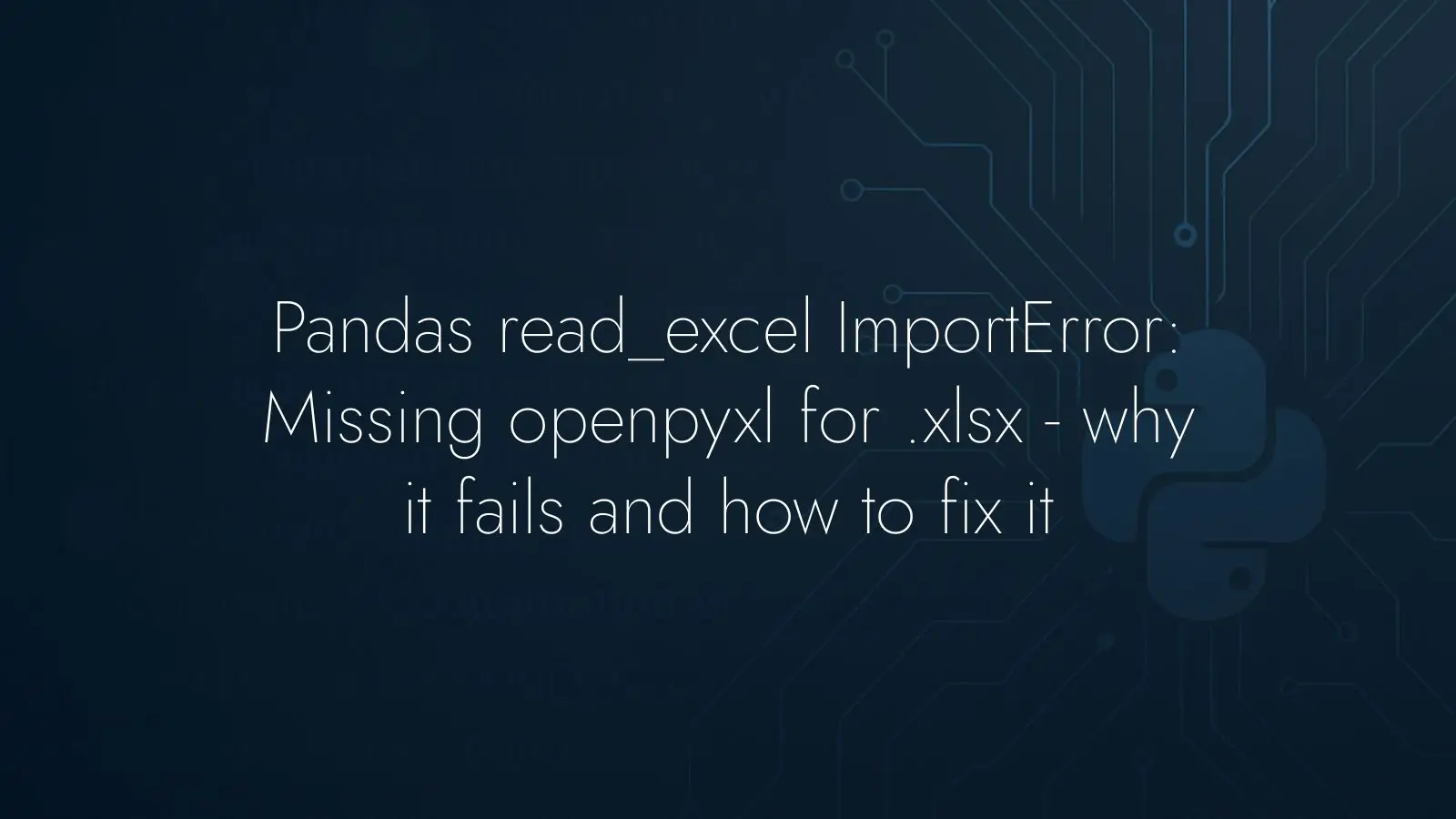 You try to read an .xlsx file with pandas, the code looks perfectly fine, yet the run ends with a stack trace. The failure is reproducible and immediate. The key lies not in your DataFrame logic but in a missing piece that pandas expects at import time.