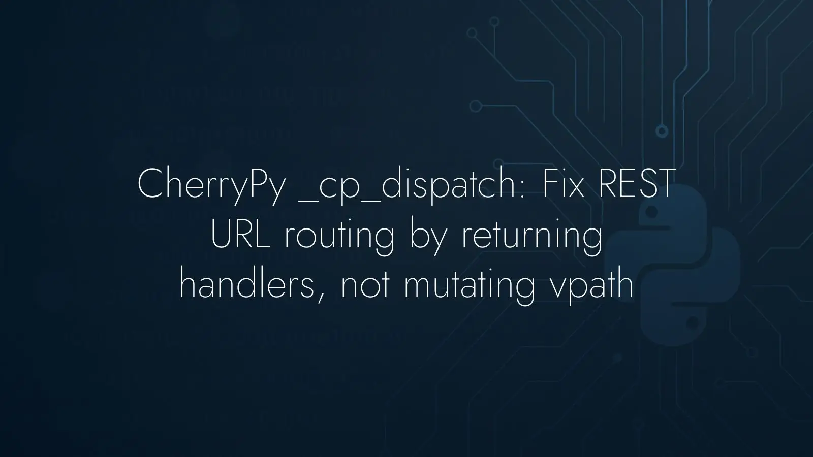 CherryPy’s _cp_dispatch gives you a low-level hook to bend URL routing to your will. It’s perfect when you need clean REST-style paths that don’t map one-to-one to method names. The catch: if you mutate the path segments blindly and keep returning self, CherryPy may keep traversing as if you had sub-objects, and your handler never gets called. Below is a compact walkthrough of the pitfall and the fix.