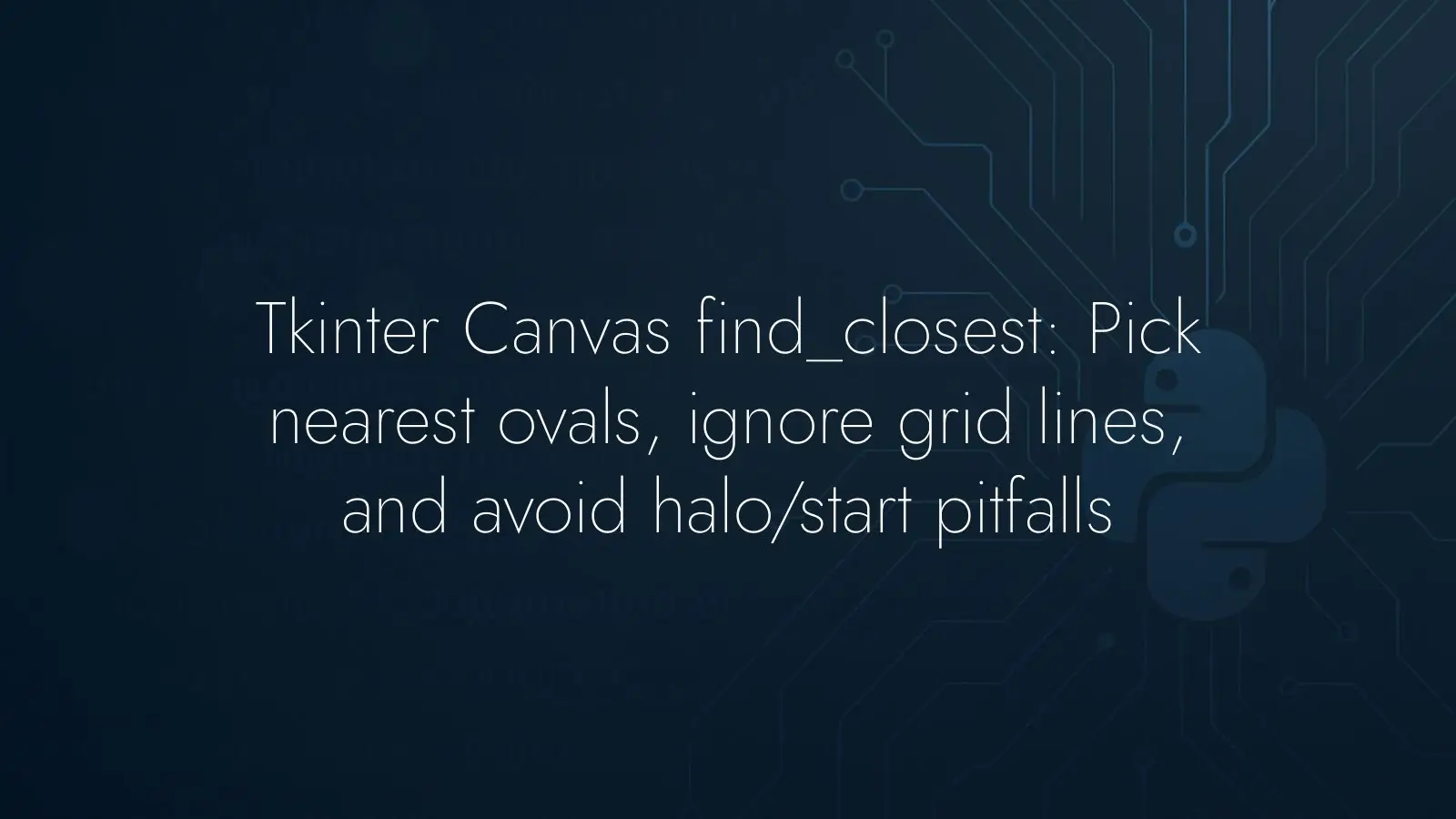 Picking the right object on a Tkinter Canvas can be trickier than it looks. When you want clicks to snap to the nearest point while ignoring other shapes like grid lines, a naive call to find_closest(x, y) quickly runs into edge cases. The function happily returns whatever is closest in display space, which may be a line segment rather than a tiny oval you actually care about. Attempts to constrain the search with start and halo often don’t help in the way you might expect.