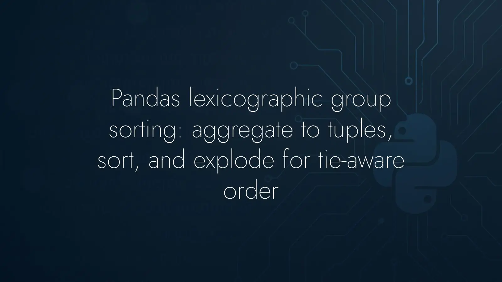 Learn how to sort groups in pandas lexicographically: sort values, aggregate to tuples, sort by tuples, then explode. Tie-aware order with pandas groupby.