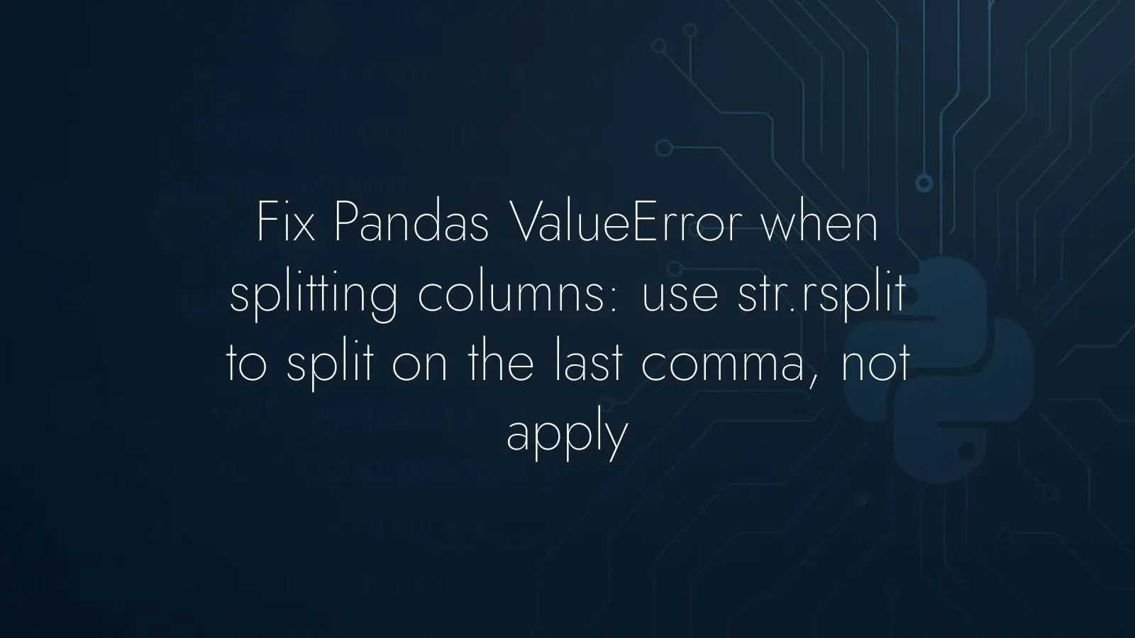 Splitting a single Pandas column into two can look deceptively simple, until a seemingly harmless assignment throws ValueError: Cannot set a DataFrame with multiple columns to the single column. Below is a concise walkthrough of the failure mode and a robust way to split on the last comma, even when there are multiple commas in the text.