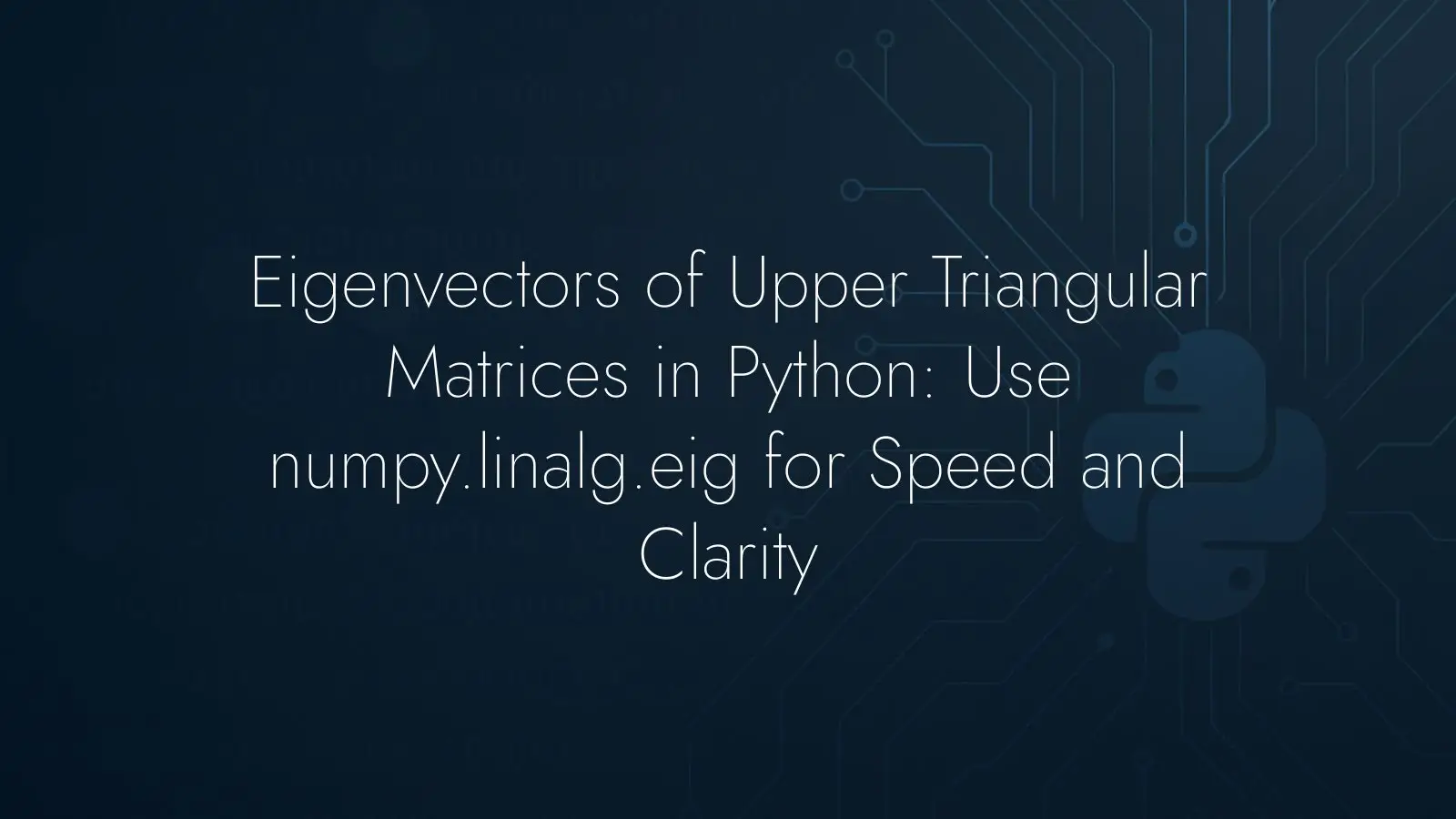 The task is to compute eigenvectors for many triangular matrices without paying unnecessary overhead. The diagonal gives the eigenvalues immediately, so solving (A − λI)x = 0 for each λ might look attractive. But if you have on the order of a few hundred matrices and similarly many eigenvalues per matrix, per-eigenvalue solves quickly add up. The practical question is whether numpy.linalg.eig is “too generic” here or whether it already optimizes for triangular input.