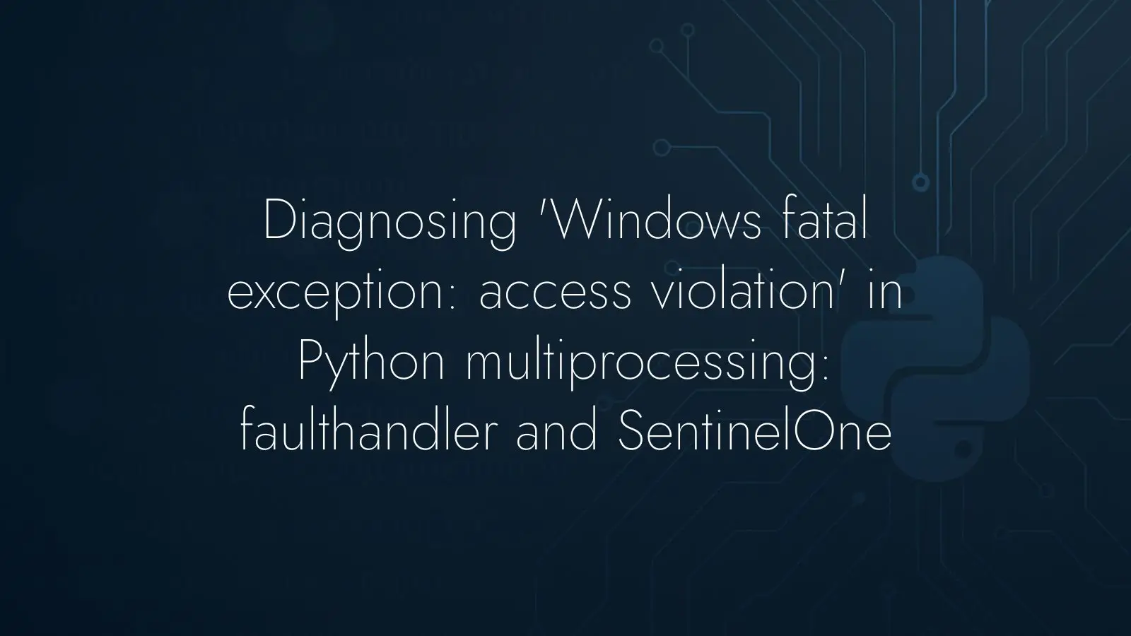 If you see “Windows fatal exception: access violation” during mp.Process startup, and your script still completes, consider environmental factors. In the case described above, the SentinelOne agent was the trigger. With faulthandler disabled you may not notice the message at all, whereas pytest surfaces it by default. Verifying on a machine without antivirus, trying a clean Python install, or launching a trivial subprocess are practical ways to confirm the behavior isn’t rooted in your code.