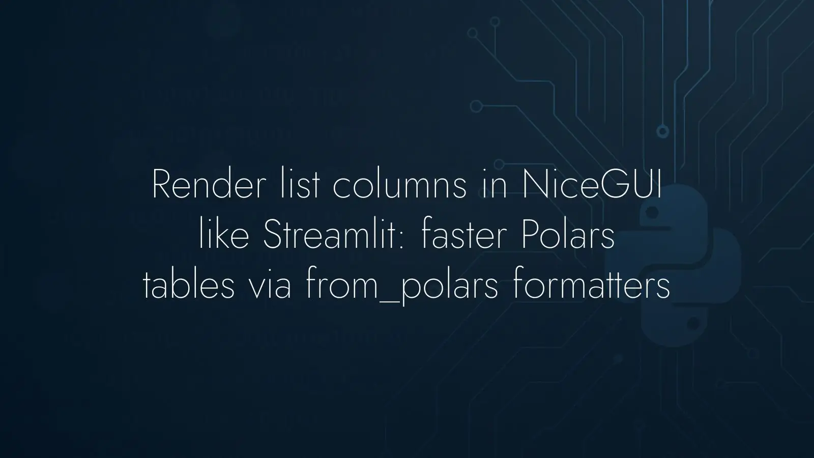 Learn how to render list columns in NiceGUI like Streamlit, avoid slow from_polars conversion, and speed up Polars tables with JavaScript column formatters.
