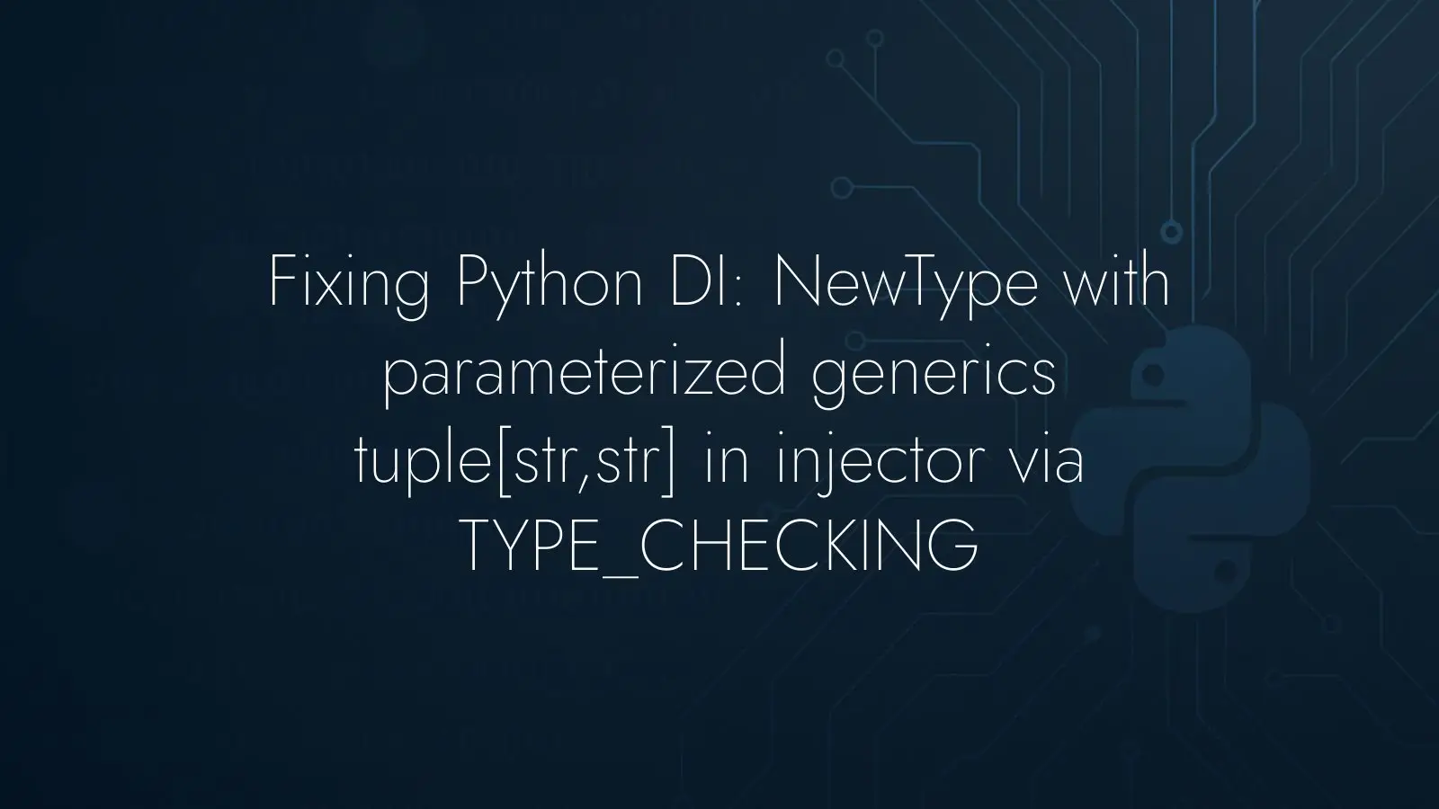 Dependency injection in Python often leans on runtime types, while our annotations are increasingly expressive thanks to typing. The friction appears when those worlds meet. A common case: binding a NewType based on a parameterized generic such as tuple[str, str] in injector fails at runtime with an UnknownProvider.