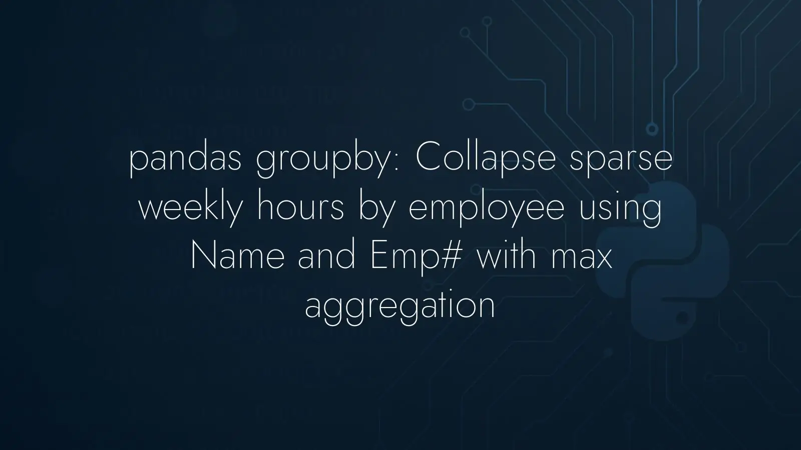 Learn how to use pandas groupby on Name and Emp# plus max to collapse sparse weekly hours into one row per employee. Ideal for timesheets and reporting.