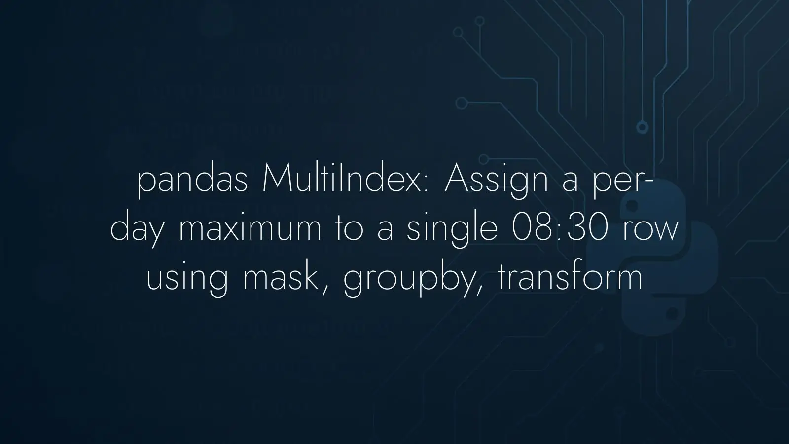 Learn to assign a per-day max to the single 08:30 row in a pandas MultiIndex DataFrame using boolean masks and groupby transform, avoiding broadcasting.