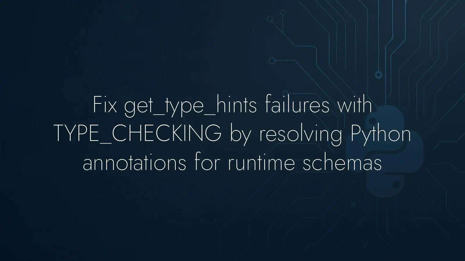 When schema generation or any form of runtime introspection depends on annotations, a missing import under TYPE_CHECKING can derail the entire pipeline. Making resolution explicit keeps your tooling resilient. It acknowledges that annotations may refer to names that aren’t present at runtime and ensures your process still completes without changing the original source. As was aptly observed, get_type_hints will attempt to resolve forward references and raise when it cannot, so pre-populating the resolution context is critical. There is also discussion around PEPs 563 and 749 in this area, but the approach above stays focused on making the current resolution succeed with the code you have.