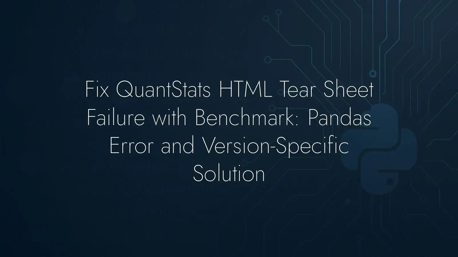 When generating a QuantStats HTML tear sheet for a single asset, everything works. The moment a benchmark is added, some users hit a failure that stops the report with a pandas error. This guide walks through a minimal reproduction, what exactly breaks, and practical ways to resolve it using supported QuantStats versions.