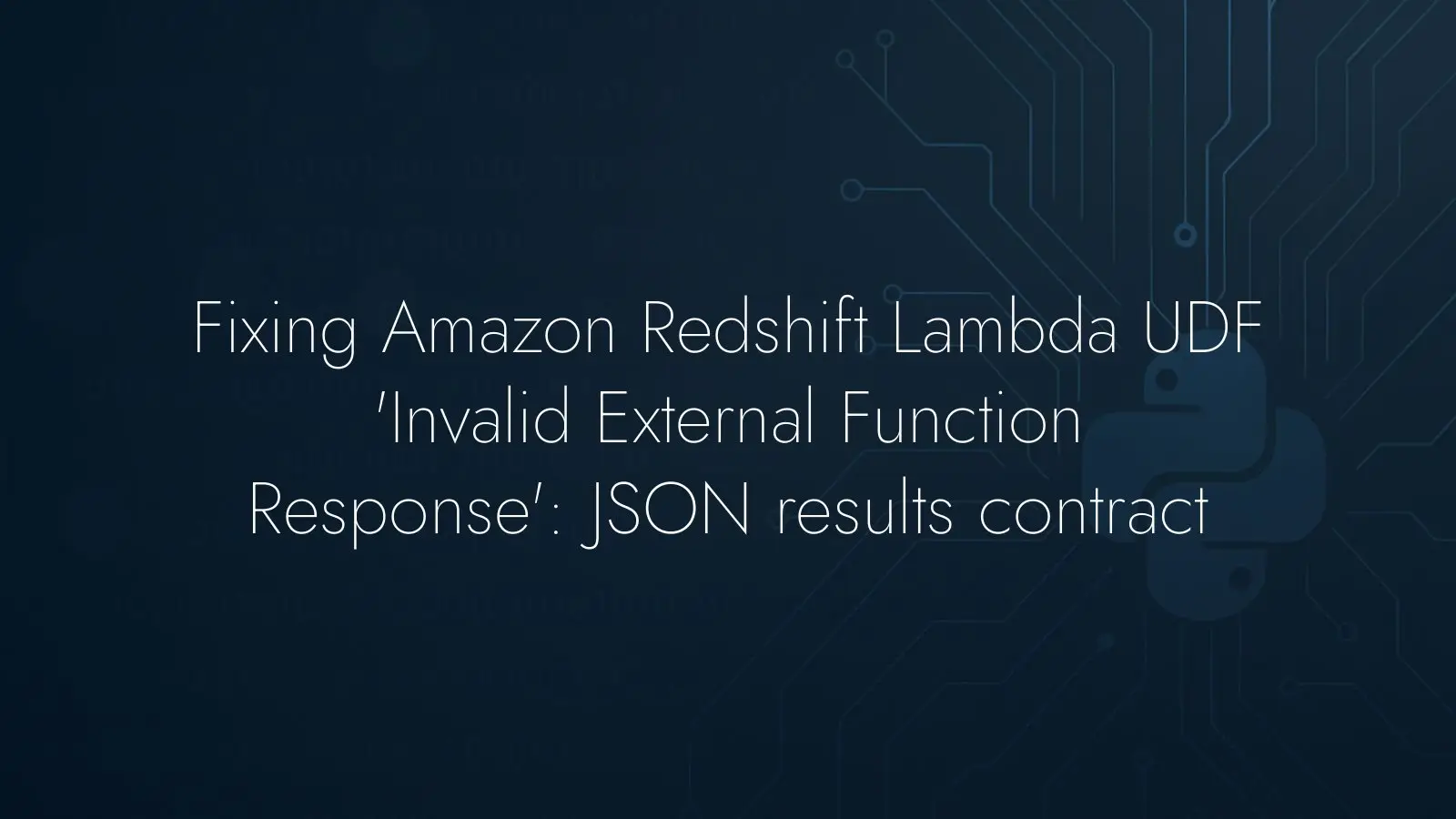 Learn why Amazon Redshift Lambda UDFs fail with 'Invalid External Function Response' and how to fix it by returning JSON with a results array matching inputs.