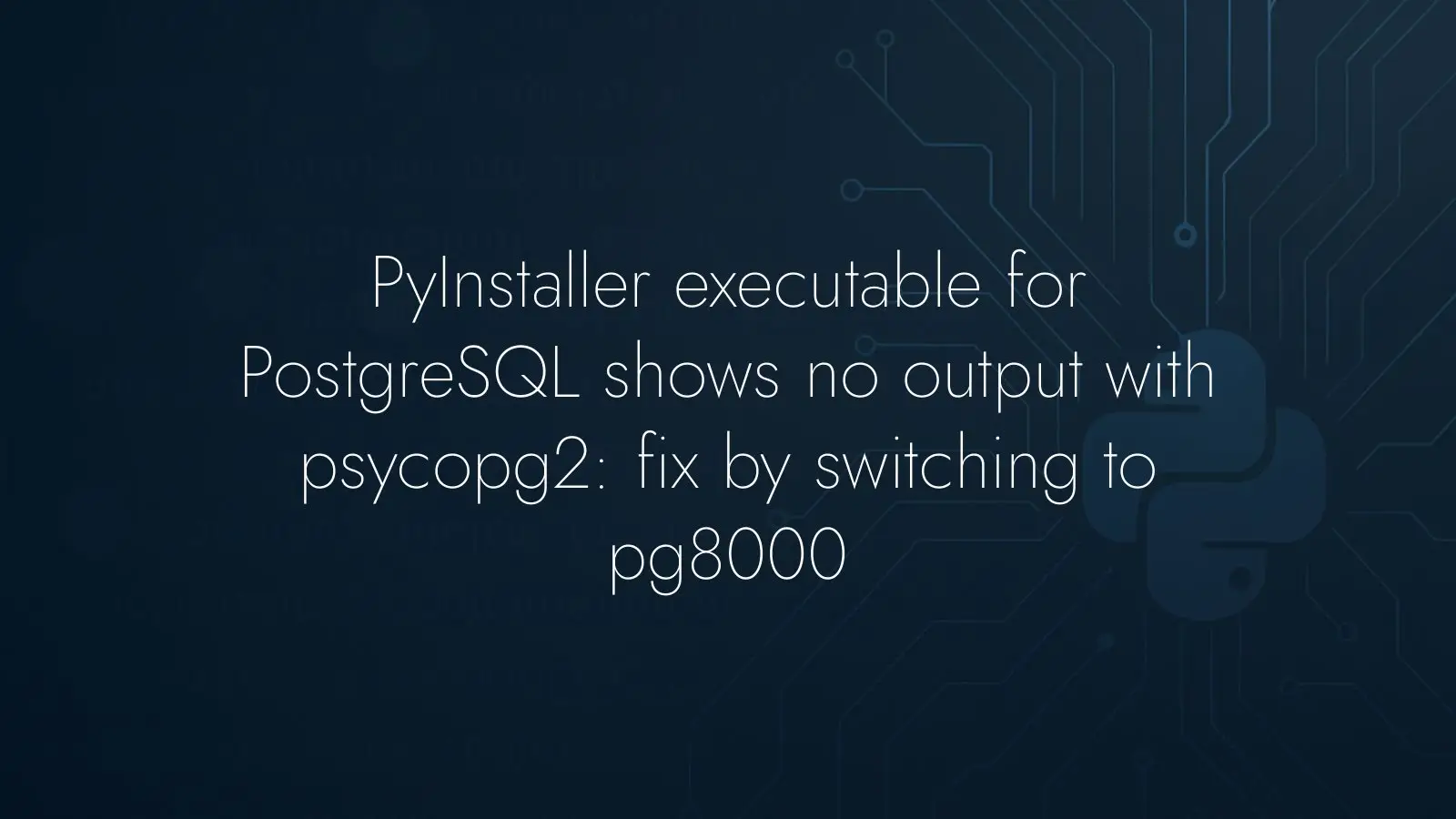 Silent runtime failures after packaging are highly time-consuming because you have little to no signal about what went wrong. When your application is I/O bound (database access, network calls), even a subtle driver or packaging nuance can be enough to suppress observable output. Knowing that swapping the PostgreSQL module fixed the behavior in this scenario gives you a concrete escape hatch when you face the same symptoms: .py works, PyInstaller build shows no errors, .exe runs but prints nothing.