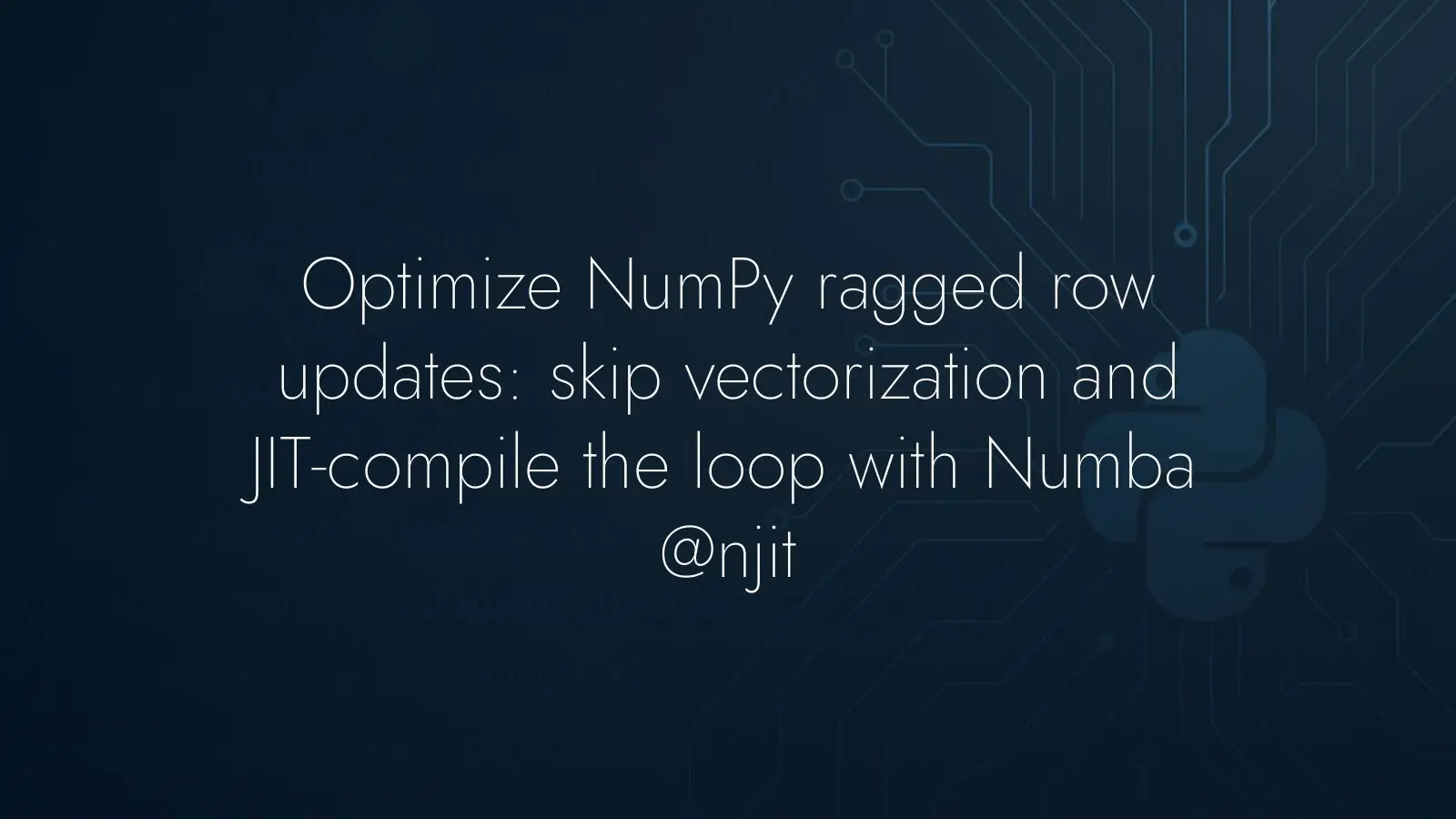 Learn how to speed up ragged per-row writes in NumPy by compiling the loop with Numba @njit. Avoid vectorization and achieve up to 10x faster performance.