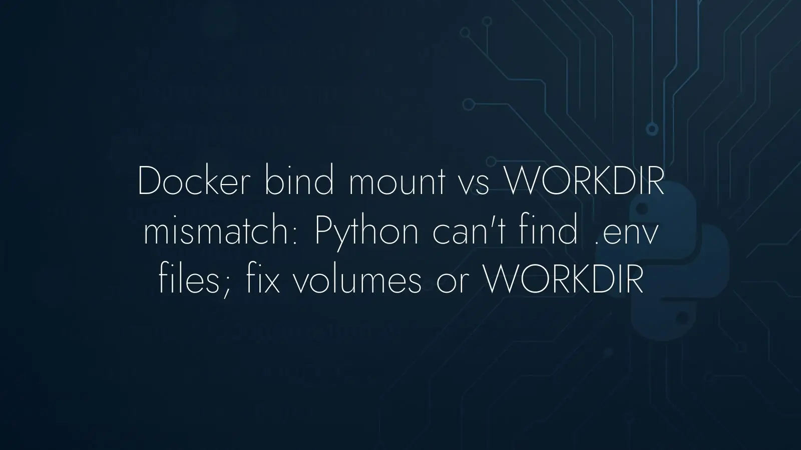 Python can't read .env inside Docker? The issue is a bind mount vs WORKDIR mismatch. Learn how to align docker-compose volumes or WORKDIR to fix missing files.