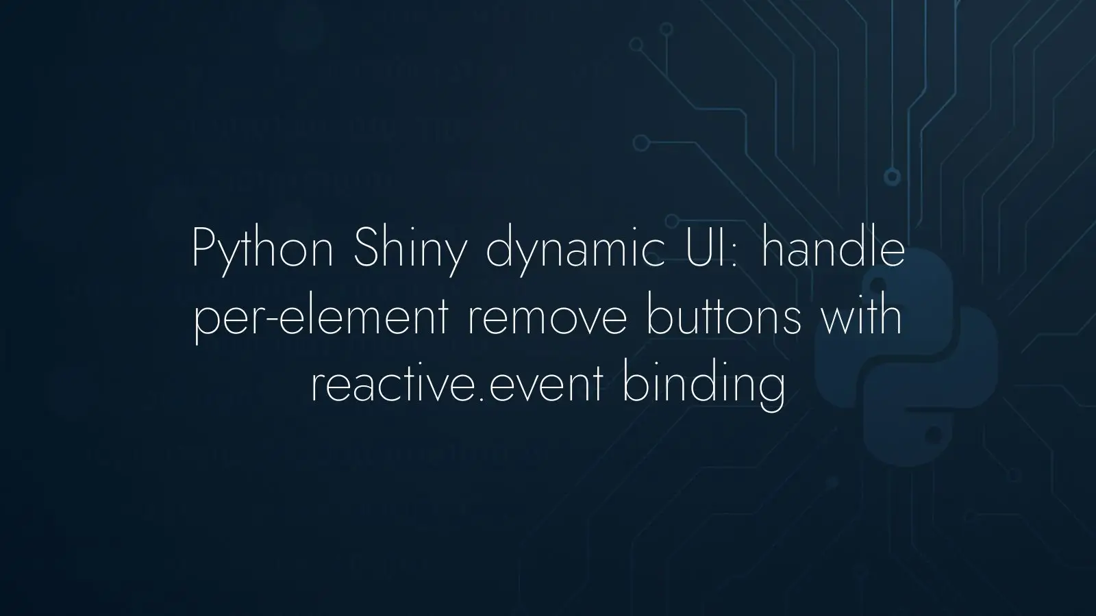 Dynamic UI in Python Shiny looks easy until you need per-element actions. A global “Add” button is straightforward, but individual remove controls must trigger their own events. The typical stumbling block is wiring up a click on each dynamic “X” button so that it removes its own element without affecting the rest.