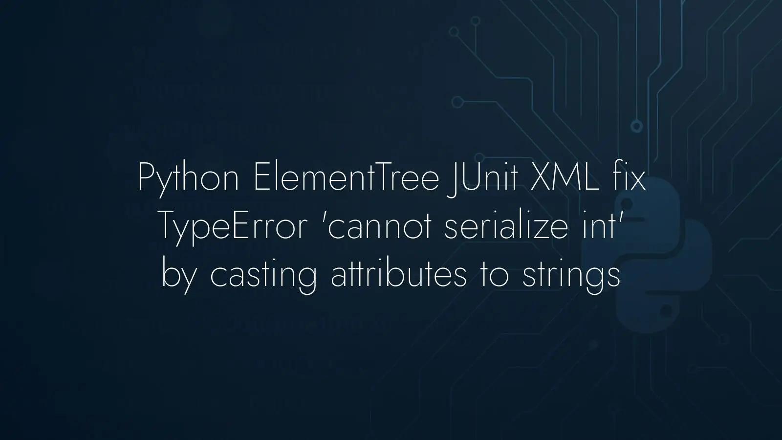 Learn why xml.etree.ElementTree raises TypeError: cannot serialize int for JUnit-style XML and how to fix it by casting numeric attributes to strings. Fast fix.