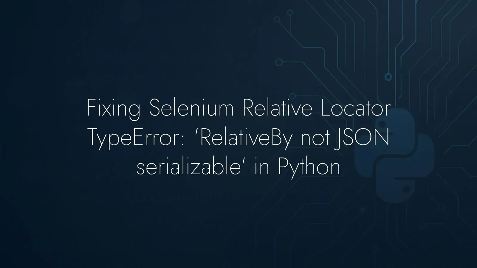 Running into a TypeError when working with Selenium relative locators can be confusing, especially when the method signature suggests it should work. If you see an exception about RelativeBy not being JSON serializable while calling find_element on a WebElement, this guide shows exactly why it happens and how to fix it without changing your intended selector logic.