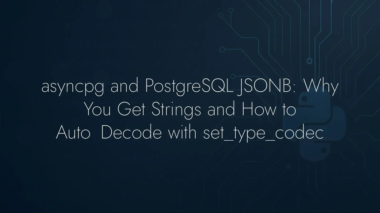 When working with asyncpg and PostgreSQL’s JSONB, a common surprise is getting plain strings back instead of native Python objects. If your queries return JSONB values as text, operations that rely on dicts and lists become awkward, and type assumptions break instantly. Below is a concise walkthrough of the issue and a minimal, reliable fix.