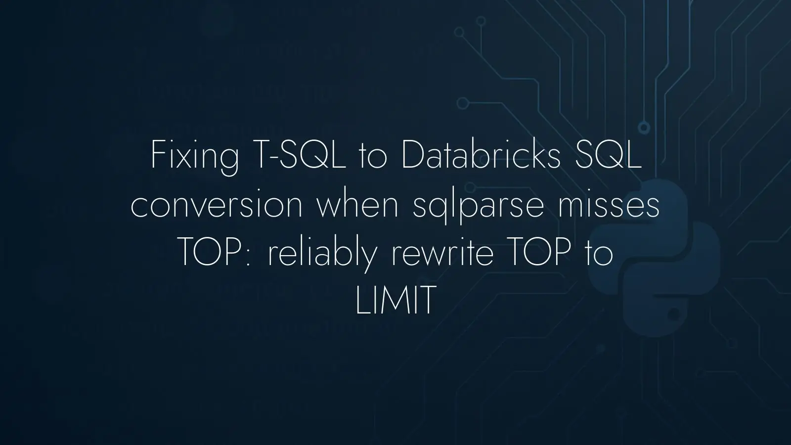 Learn why sqlparse fails to tag TOP in T-SQL, breaking T-SQL to Databricks SQL rewrites, and how to detect it and convert TOP to LIMIT with reliable guards.
