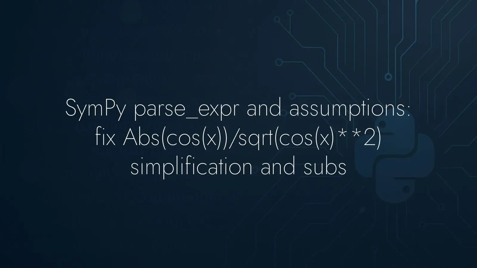 When symbolic math libraries behave “too literally”, it often comes down to missing assumptions or mismatched symbols. A common case in SymPy is expecting Abs(cos(x))/sqrt(cos(x)**2) to simplify to 1, but getting the original expression back. The root cause and the fix are both straightforward once you know where to look.