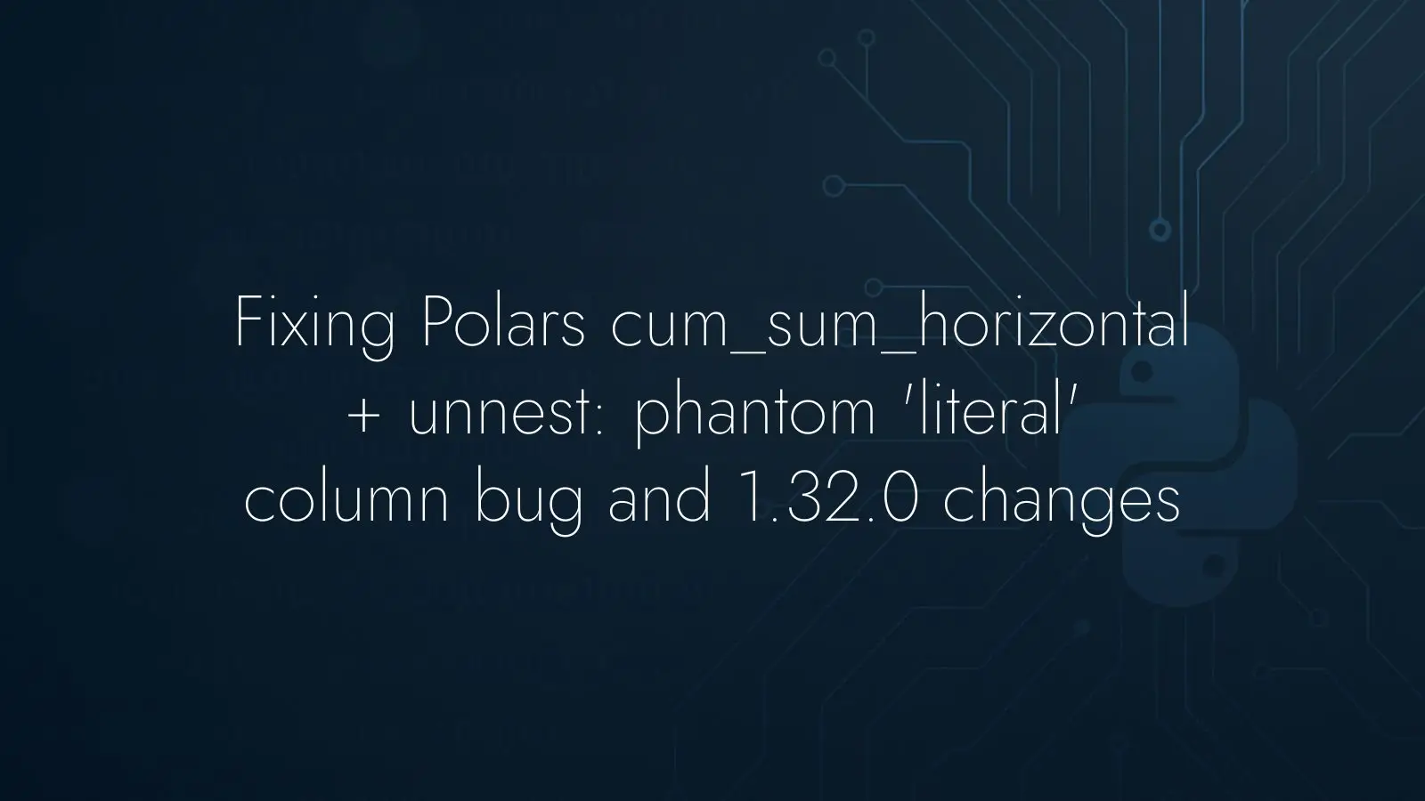 Learn how a Polars 1.31.0 bug created a phantom literal column after cum_sum_horizontal + unnest, and how 1.32.0 fixes it. Use unpacked args or cum_fold.