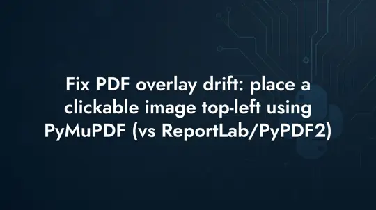 Fix PDF overlay drift: place a clickable image top-left using PyMuPDF (vs ReportLab/PyPDF2)
