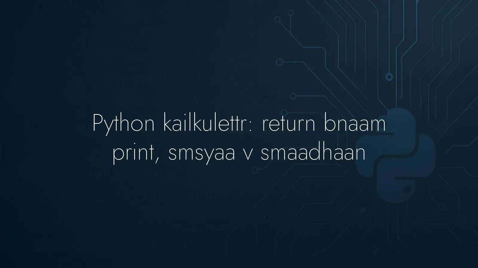 छोटा‑सा इंटरएक्टिव कैलकुलेटर बनाना Python के I/O और नियंत्रण प्रवाह सीखने का बढ़िया तरीका है। लेकिन अक्सर लोग यह मान लेते हैं कि कोई फ़ंक्शन सिर्फ़ मान लौटाते ही नतीजा दिखा देगा। अगर आपका प्रोग्राम सारे इनपुट लेता है और अंतिम उत्तर दिखाए बिना फिर से शुरू हो जाता है, तो सबसे संभावित कारण यह है कि आप परिणाम को प्रिंट करने की बजाय return कर रहे हैं। साथ ही, कुछ नियंत्रण‑प्रवाह और फ़ॉर्मैटिंग से जुड़ी बातें भी हैं जो अपेक्षित व्यवहार को छिपा सकती हैं।