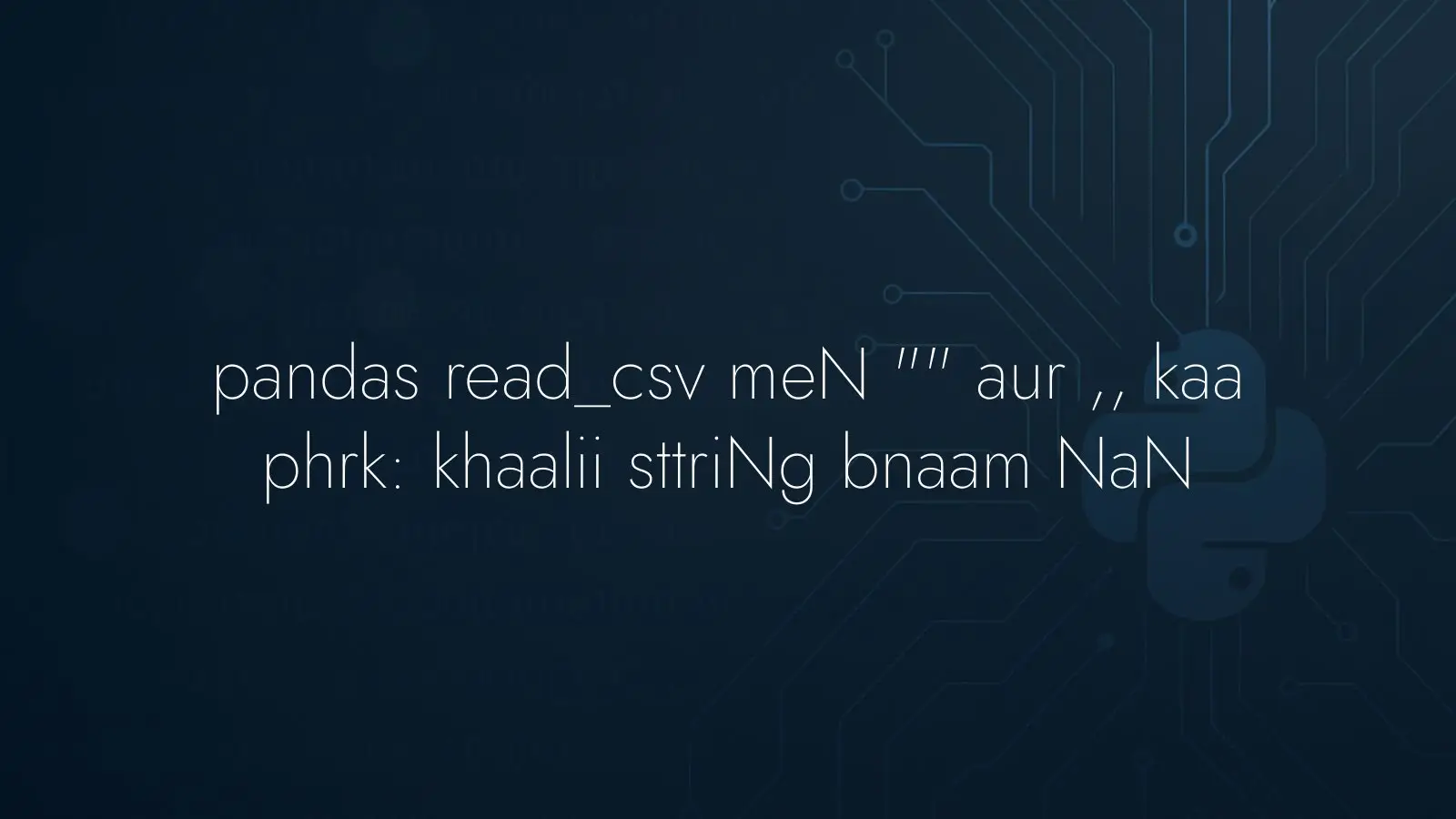जानबूझकर खाली स्ट्रिंग और CSV में अनुपस्थित मान को अलग-अलग पहचानना सुनने में आसान लगता है, पर pandas अक्सर दोनों को चुपचाप एक जैसा कर देता है। अगर आपकी फ़ाइल में "" जैसे खाली quoted फ़ील्ड और ,, जैसी सचमुच गायब प्रविष्टियाँ साथ मिल रही हों, तो सामान्यतः आप चाहेंगे कि पहला खाली स्ट्रिंग के रूप में बना रहे, जबकि दूसरा NaN में बदले। डिफॉल्ट रूप में read_csv() यह अंतर नहीं बचाता।