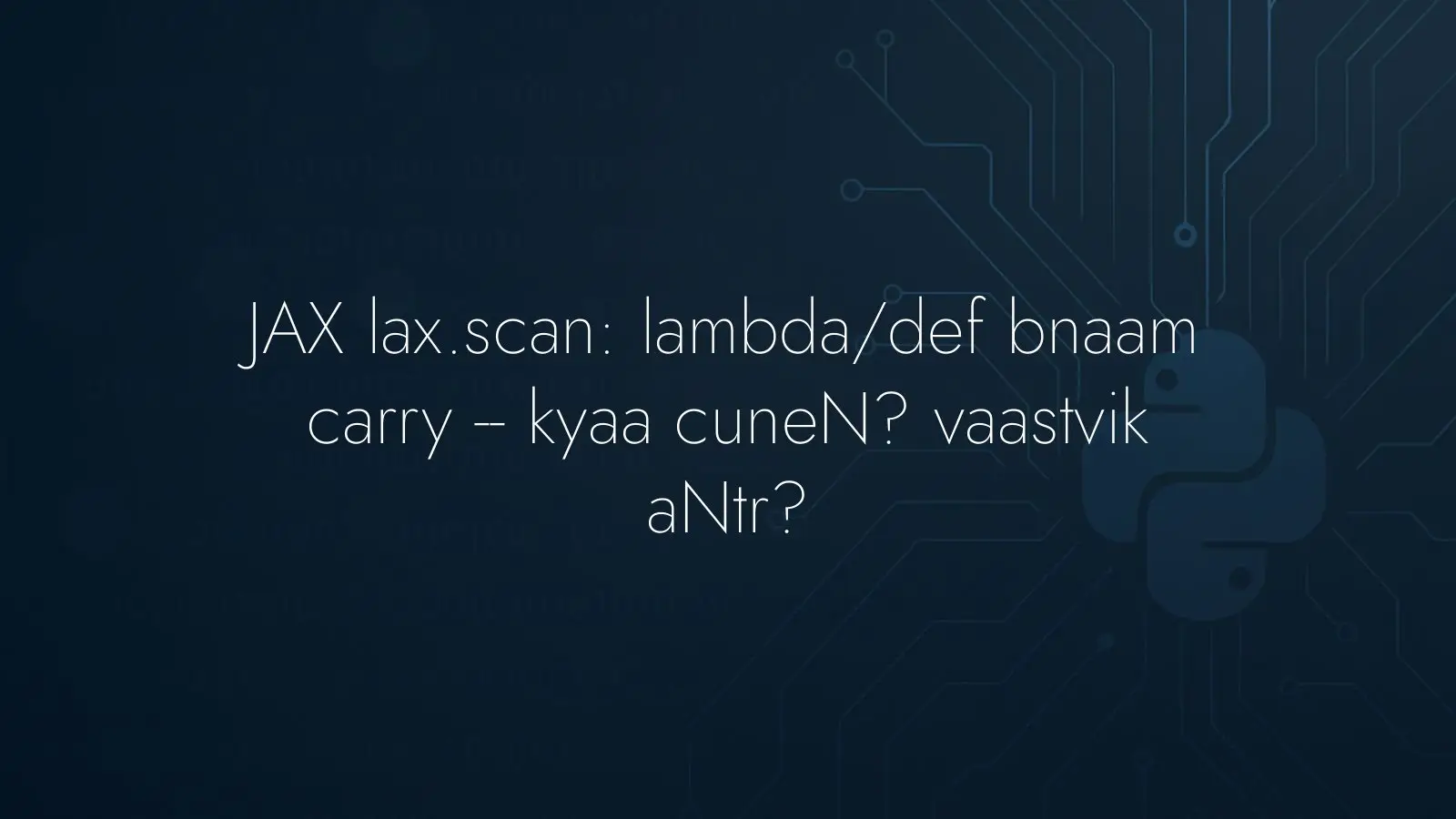 JAX में lax.scan के तीन पैटर्न—lambda/def क्लोज़र और carry—कम्पाइल व प्रदर्शन पर लगभग समान हैं। अंतर समझें, पठनीयता के आधार पर सही तरीका चुनें. उदाहरण सहित