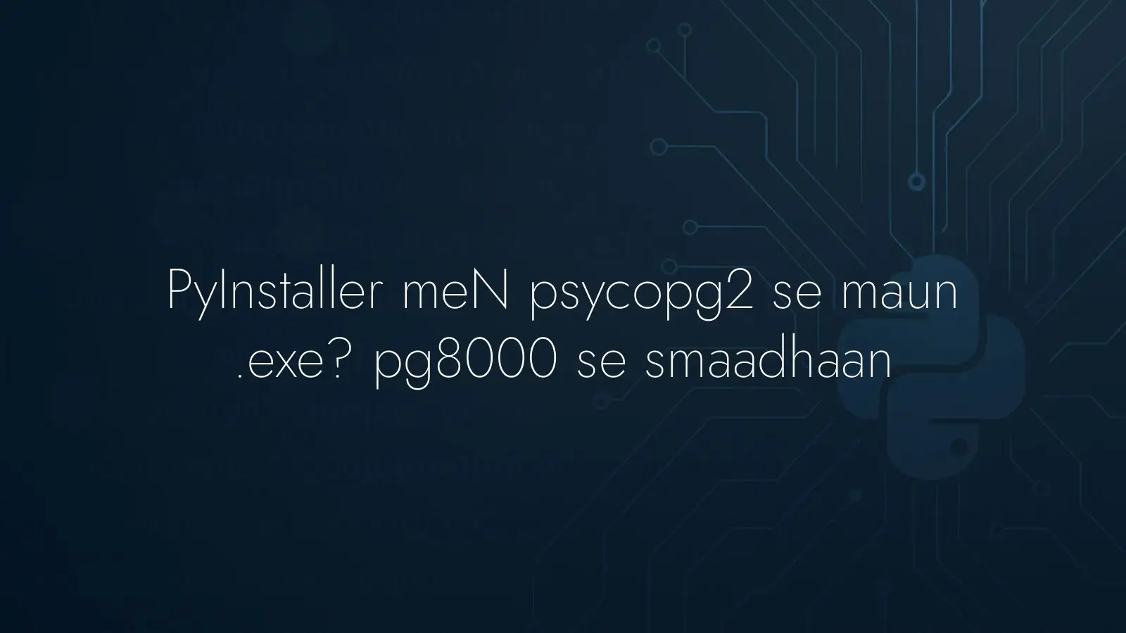 Python स्क्रिप्ट PyInstaller से .exe बनने पर आउटपुट नहीं देती? PostgreSQL में psycopg2 की जगह pg8000 अपनाकर समस्या सुलझाएँ; डिबग प्रिंट व पैकेजिंग टिप्स.