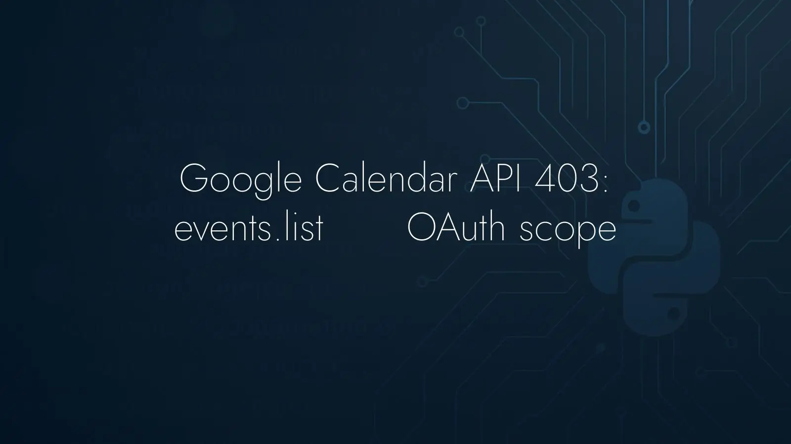 जिस Calendar API मेथड को आप कॉल कर रहे हैं, वही तय करता है कि कौन‑कौन से स्कोप स्वीकार्य हैं। events.list के लिए आवश्यक स्कोप में calendar.events.readonly शामिल है। यदि आपने इसके बजाय calendar.calendars.readonly के साथ प्रमाणित किया है, तो एक्सेस टोकन के पास ईवेंट सूचीबद्ध करने की अनुमति नहीं होगी और सर्वर 403 लौटाएगा। यह इस बात से जुड़ा नहीं है कि टोकन फ़ाइल में स्कोप दर्ज हैं या नहीं; अहम बात यह है कि आपका टोकन उसी स्कोप के साथ जारी हुआ है या नहीं जो मेथड से मेल खाता है। आप tokeninfo एंडपॉइंट पर टोकन जाँचकर इसके दावों की पुष्टि कर सकते हैं: