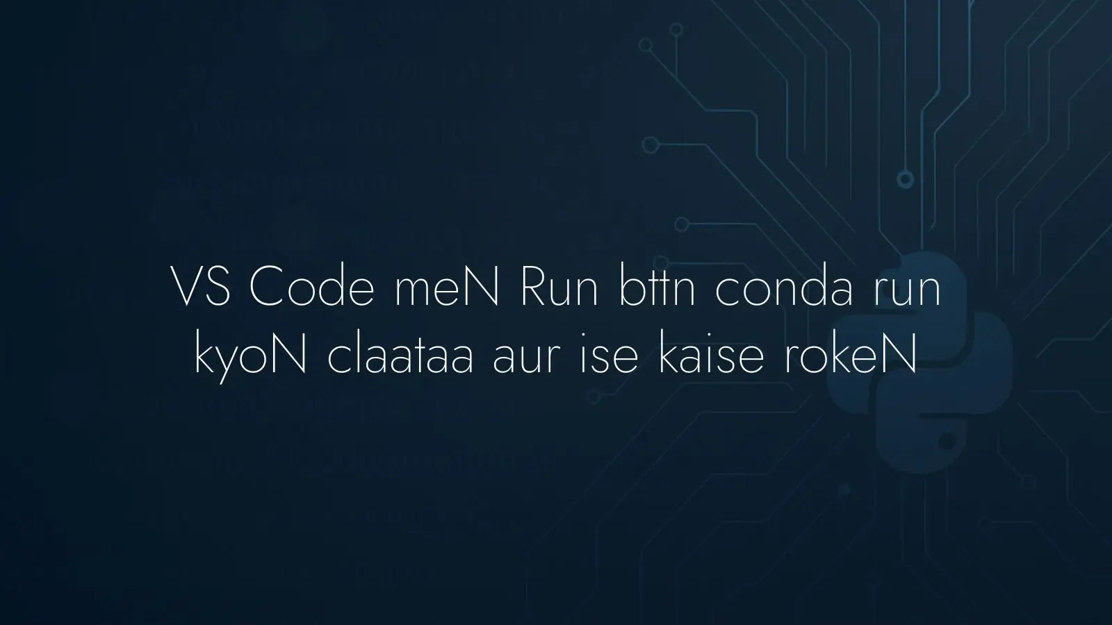 VS Code में Run बटन conda run से Python चलाए तो non‑initialized शेल में त्रुटि आती है. कारण: Python एक्सटेंशन. समाधान: Python Environments डिसेबल कर सीधे python.exe चलाएँ.