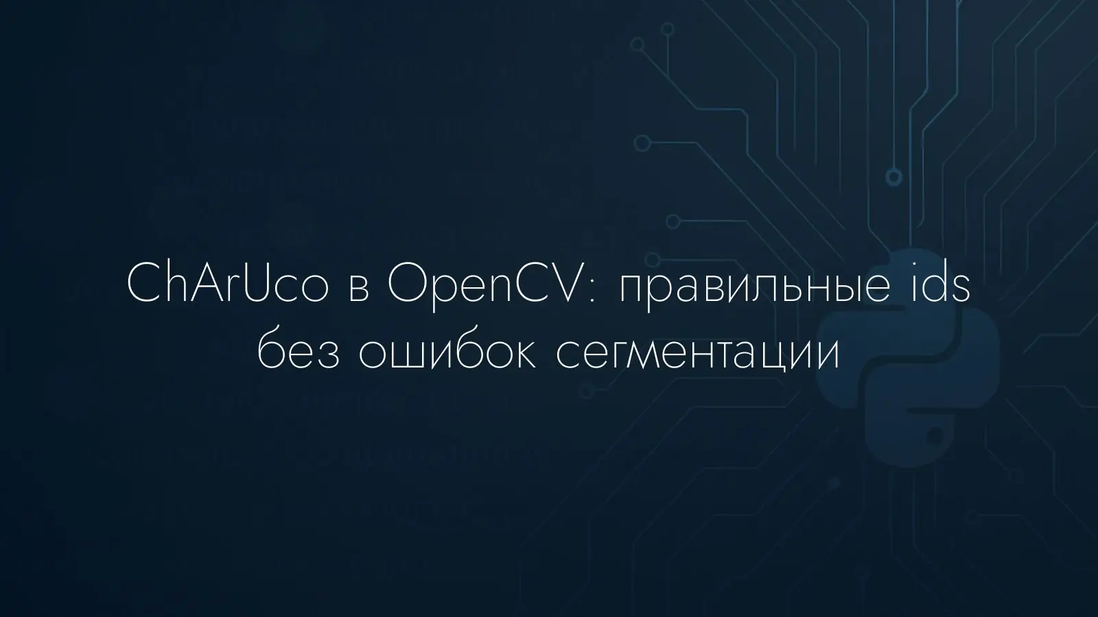 При создании доски ChArUco с собственными идентификаторами маркеров частая ошибка — передавать сетку id, повторяющую раскладку шахматной доски. Это нередко приводит к ошибке сегментации на этапе построения доски. Причина тонкая, но очевидная: ChArUco размещает по одному маркеру в каждой белой клетке, а не на пересечениях и не в каждой ячейке.