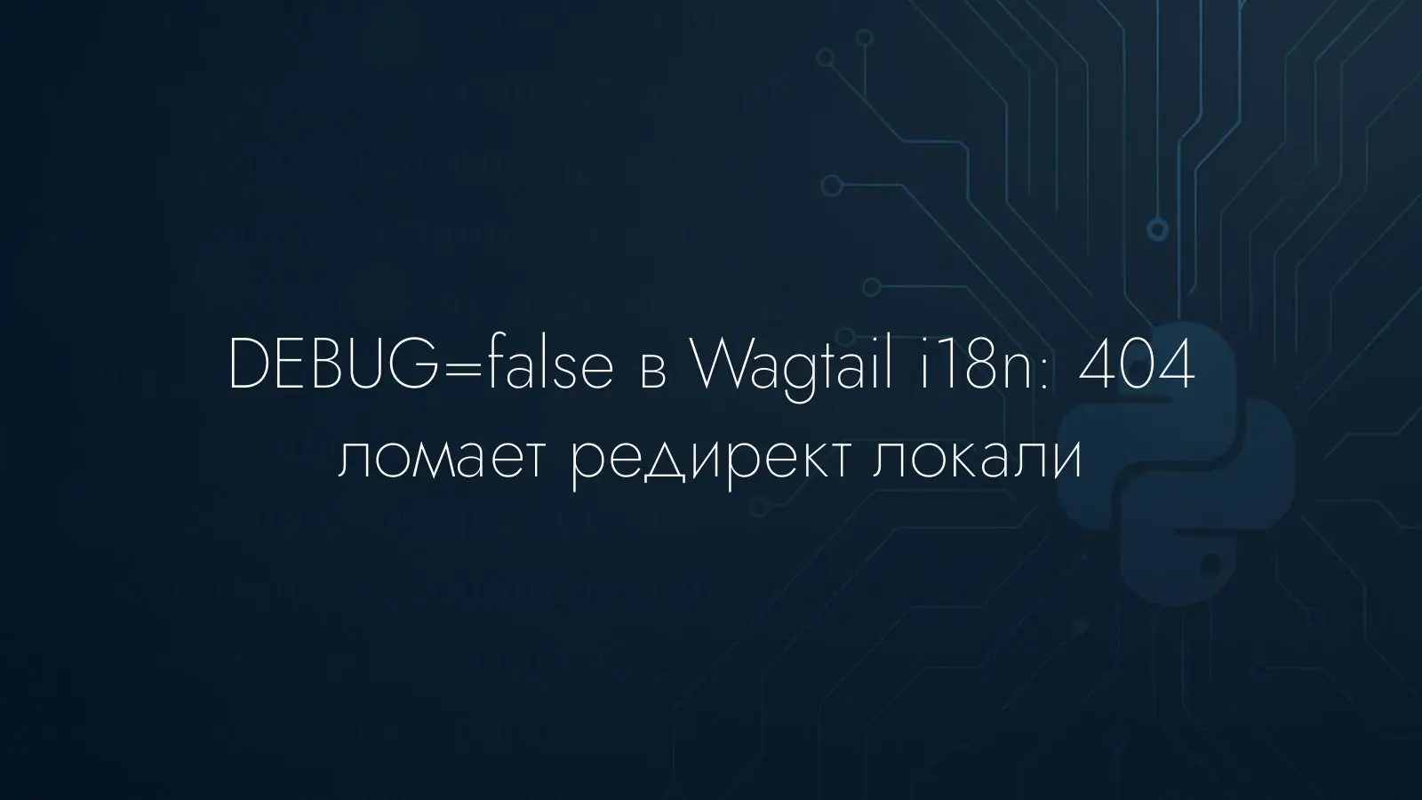 На многоязычных сайтах Wagtail первичное определение локали часто опирается на связку «перехват 404 + редирект». Если ваш шаблон ошибки не может отрендериться в минимальном контексте, используемом в этом процессе, вы фактически выключаете путь редиректа в продакшене. Отсюда — трудные для объяснения различия между DEBUG = True и DEBUG = False, неработающие заходы на корневой URL и странности вроде падения /admin без завершающего слэша при корректной работе /admin/.