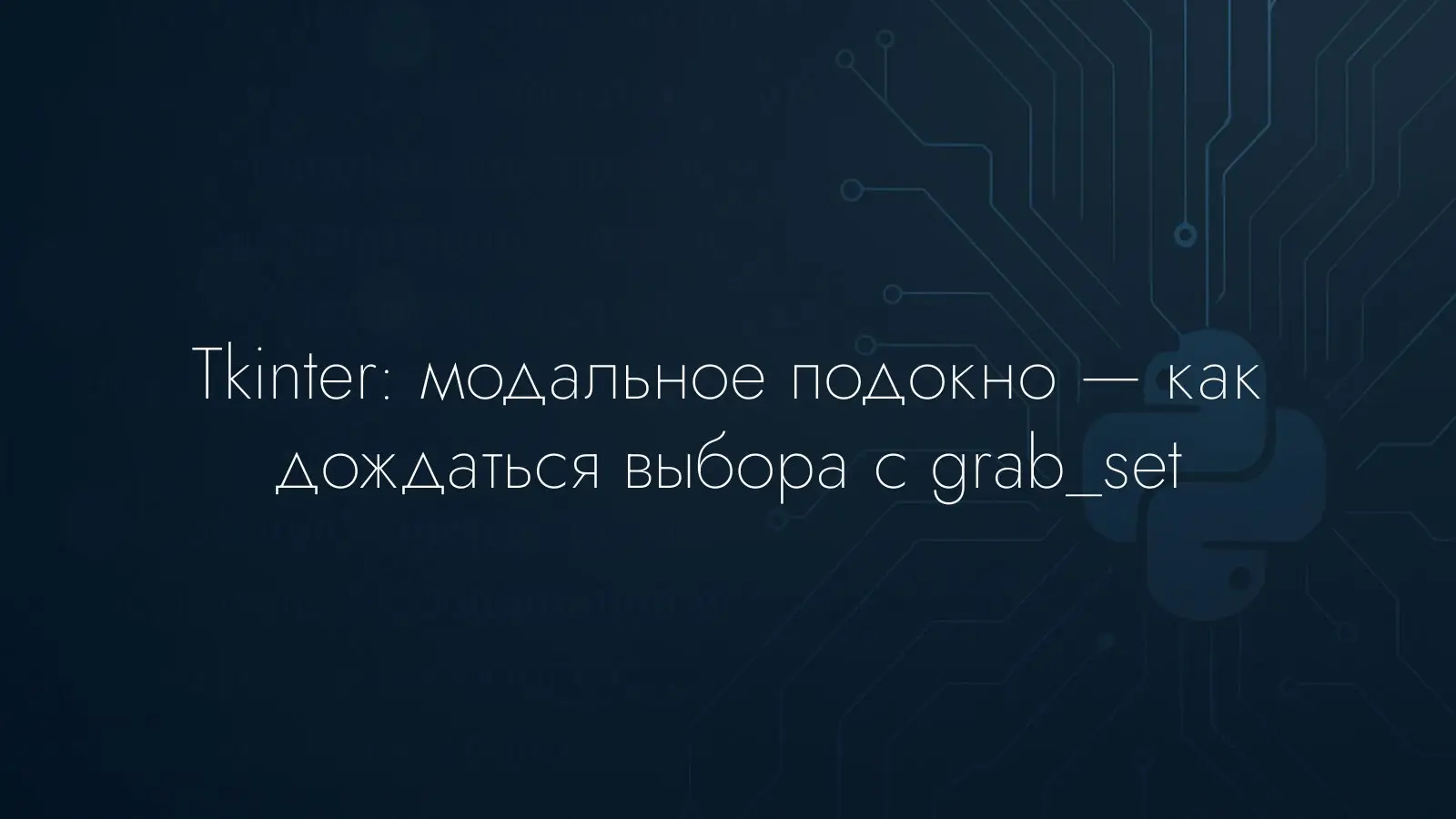 Разбираем, почему код в Tkinter не ждёт ввода из подокна, и как сделать диалог модальным: применяем grab_set и wait_window, блокируем окно и ждём закрытия.