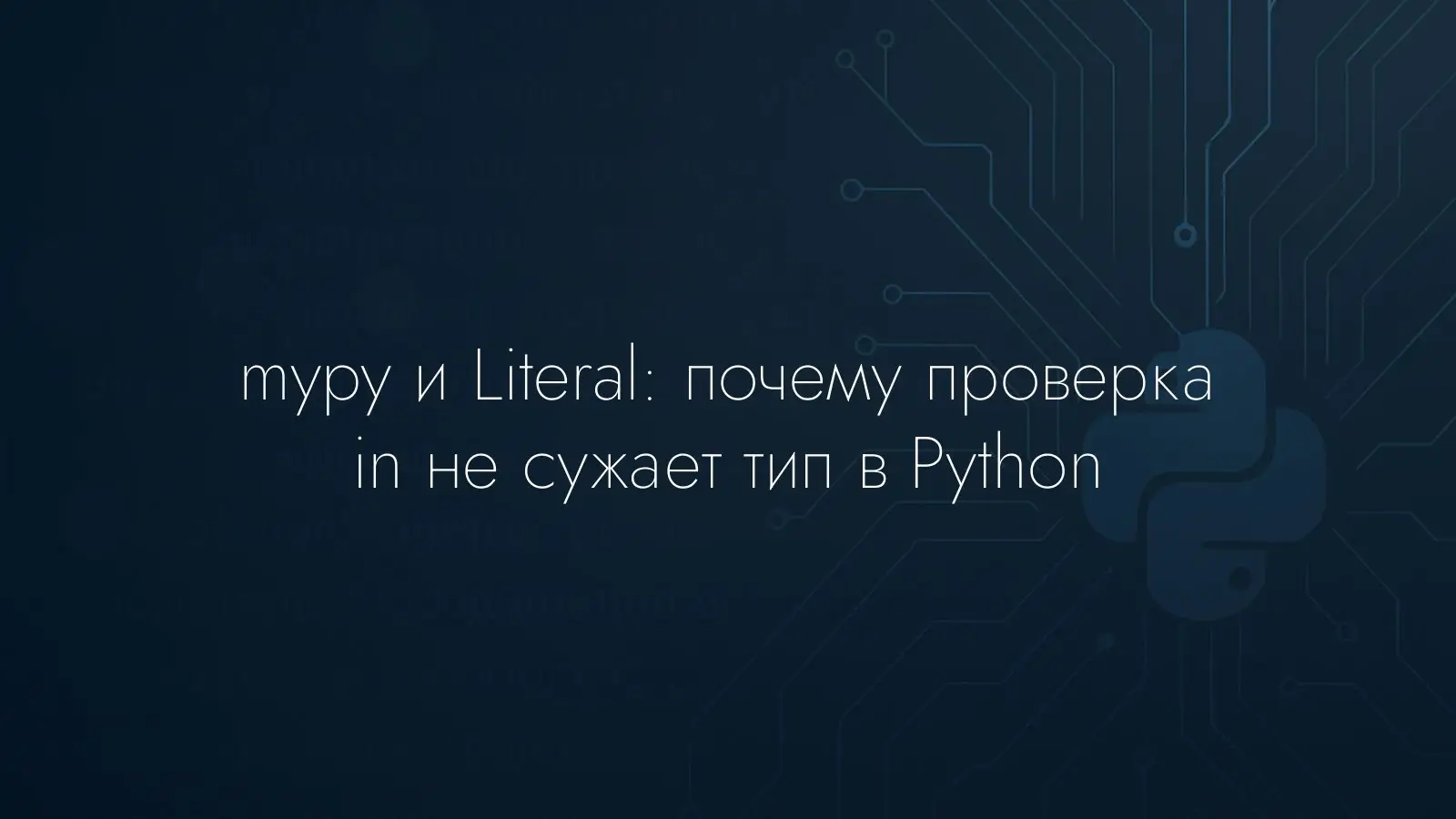 Статические анализаторы делают код безопаснее, но вместе с тем требуют строгого соблюдения правил. Часто удивляет, что проверка принадлежности — например, «строка входит в небольшой список допустимых значений» — не убеждает mypy, что значение имеет конкретный Literal. В итоге получаем ошибку, хотя во время выполнения соответствующая ветка выглядит безупречно.