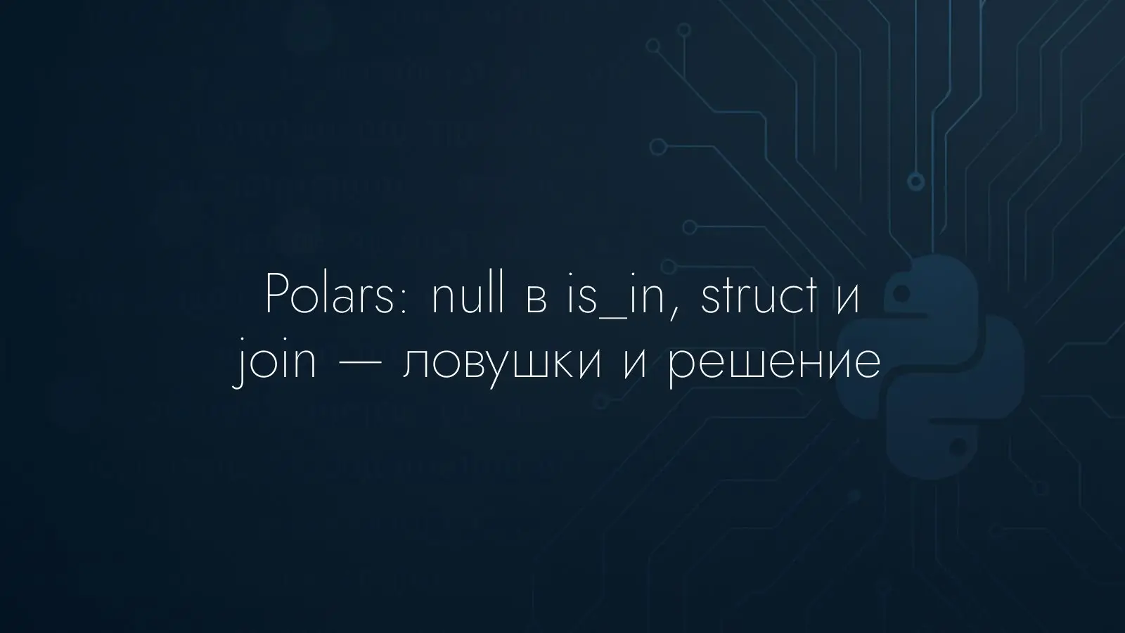 Построчные сравнения между DataFrame кажутся обманчиво простыми, пока в дело не вмешиваются null-значения. В Polars поведение по умолчанию для None может отличаться в зависимости от того, используете ли вы is_in со struct или многоключевое соединение. Если вы рассчитываете на «пандасовскую» семантику, где None никогда не совпадает, это нужно явно задать. В этом материале мы покажем рассинхрон, разберём, что происходит, и продемонстрируем, как закрепить единое поведение.