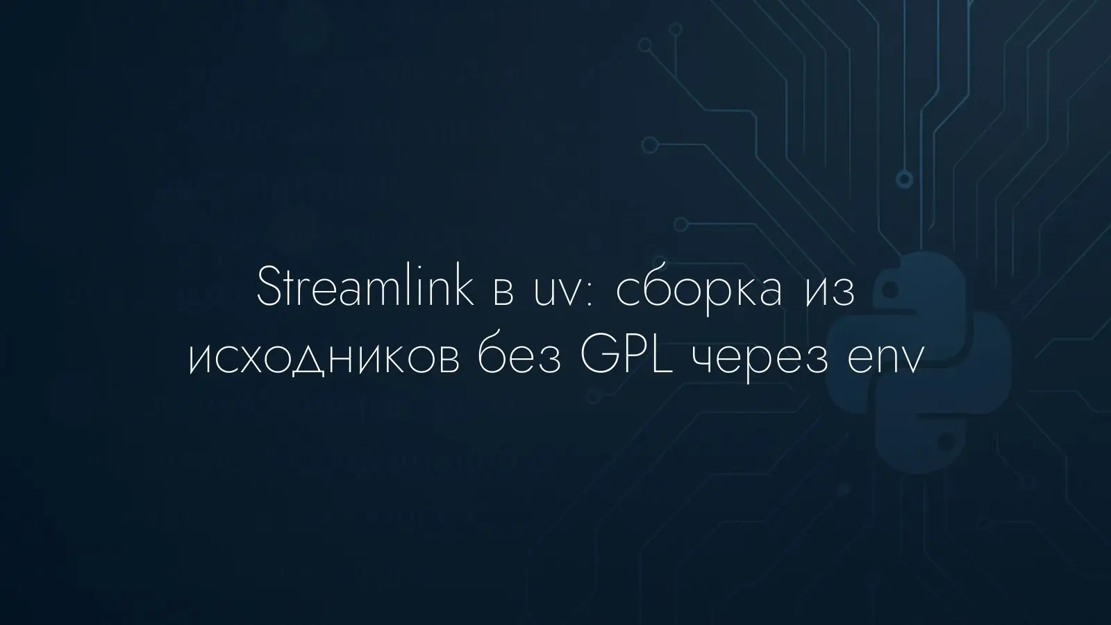 Сборка и упаковка Streamlink в корпоративной среде обычно сопровождается строгими требованиями к соответствию. Сразу проявляются два ограничения: пакет нужно собирать из исходников и исключать зависимости под лицензией GPL. В случае с pip это просто: совмещаем сборку из исходного кода с переменной окружения STREAMLINK_USE_PYCOUNTRY=1. Трудности начинаются при переходе на uv: сборка выполняется в изолированном окружении и молча игнорирует переменные, переданные из оболочки, во время операций add или pip.