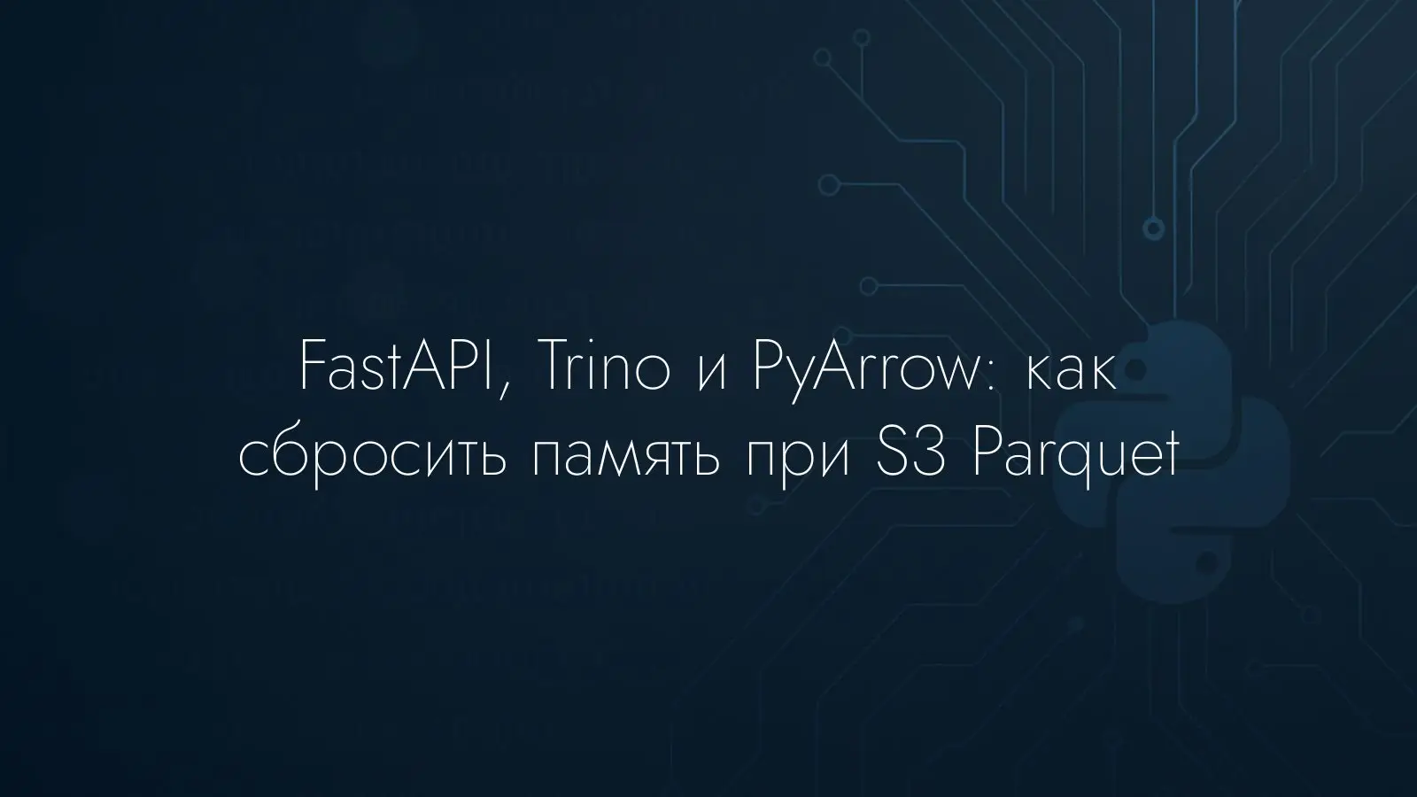 Если маршрут FastAPI, который читает из Trino, обрабатывает с PyArrow и Polars и пишет Parquet в S3, не возвращает потребление памяти к базовой отметке, считайте, что задействованы нативные выделения. Удаление объектов Python, запуск gc, вызов malloc_trim и даже освобождение пула памяти PyArrow могут частично помочь, но не гарантируют возврата к стартовой точке. Выполнение тяжелого участка в короткоживущем подпроцессе — самый надежный способ обеспечить полное освобождение памяти между запросами. Замеряйте с небольшой задержкой, держите основной процесс «тонким» и доверьте финальную очистку ОС при завершении подпроцесса.