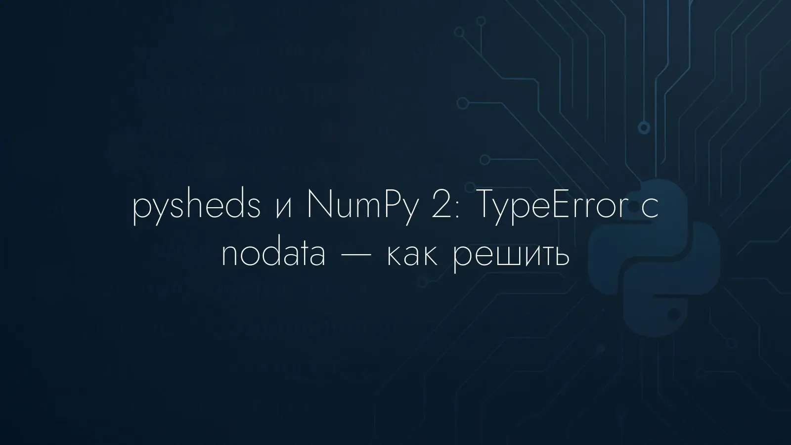 Запускаете pysheds на современной сборке и натыкаетесь на TypeError: nodata value not representable in dtype of array? Вы не одни. Сбой обычно проявляется при вычислении направлений стока и связан с изменениями поведения в NumPy 2, а не с вашим растром или настройками алгоритма.