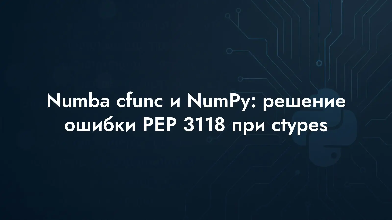 Когда вы строите фабрику, возвращающую Numba cfunc для работы с массивами NumPy, может показаться удобным передать «сырой» указатель, полученный через ctypes. На практике это часто заканчивается падением с ошибкой unsupported PEP 3118 format: замыкание захватывает ctypes‑указатель, который Numba не может типизировать в режиме nopython. Исправление проще, чем кажется: при вызове скомпилированной функции передавайте напрямую атрибут .ctypes массива.