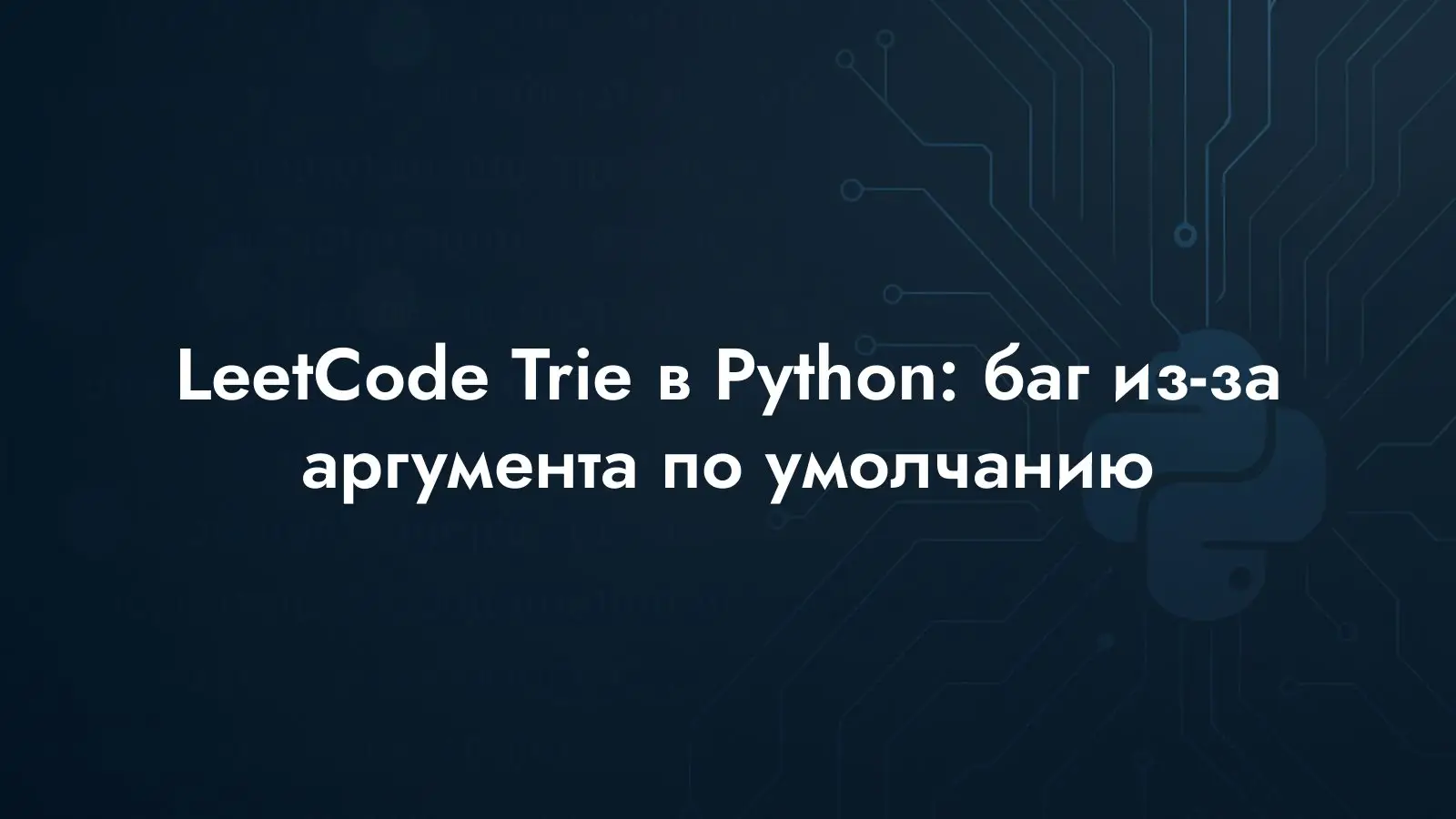 Разбираем баг в задаче LeetCode Implement Trie: из-за изменяемого значения по умолчанию dict экземпляры делят состояние. Причина и исправление с None.