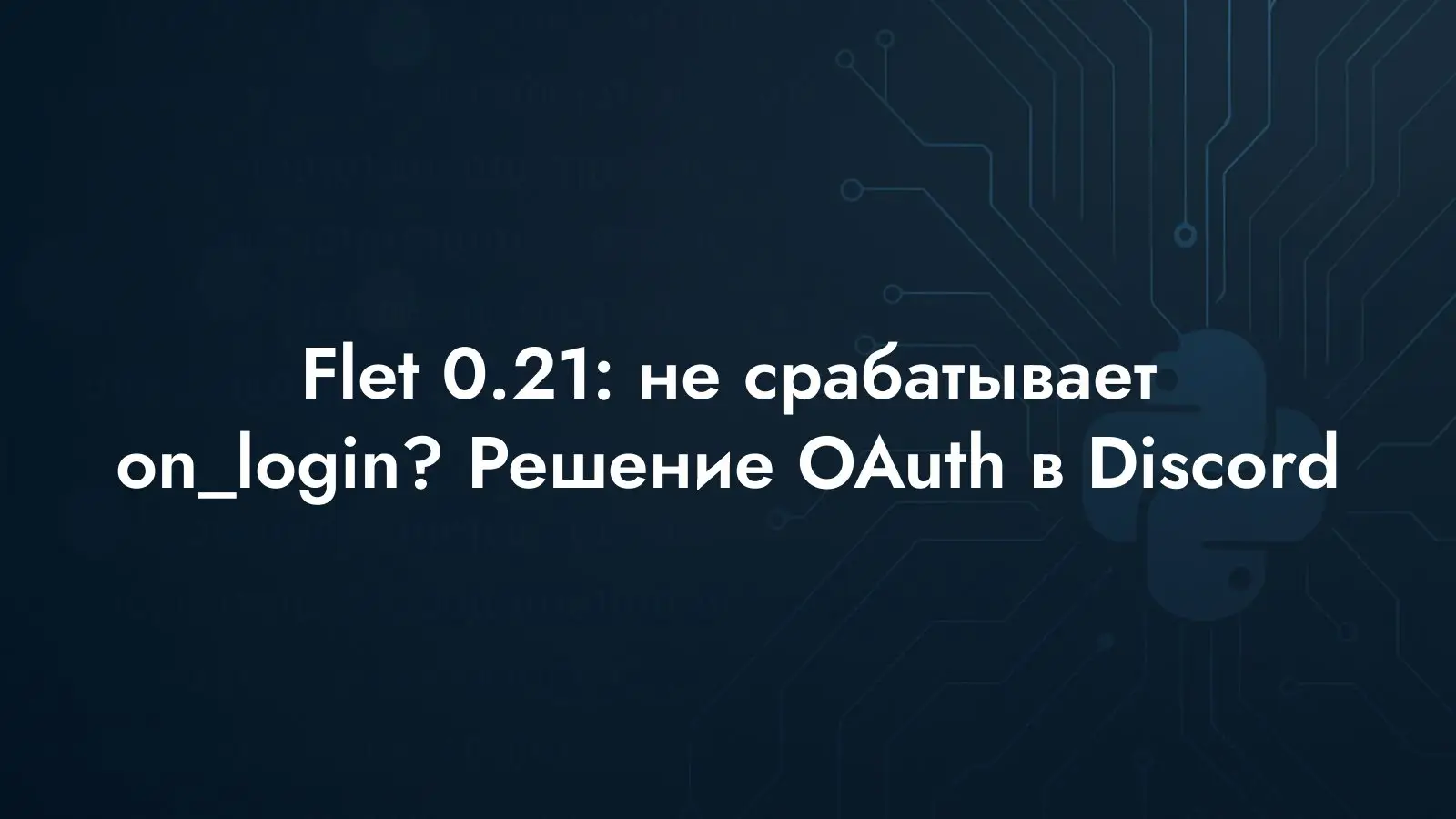 Проблема Discord OAuth в Flet 0.21.0: on_login не вызывается из‑за нового эндпоинта /oauth_callback. Как настроить redirect_url, чтобы авторизация заработала.