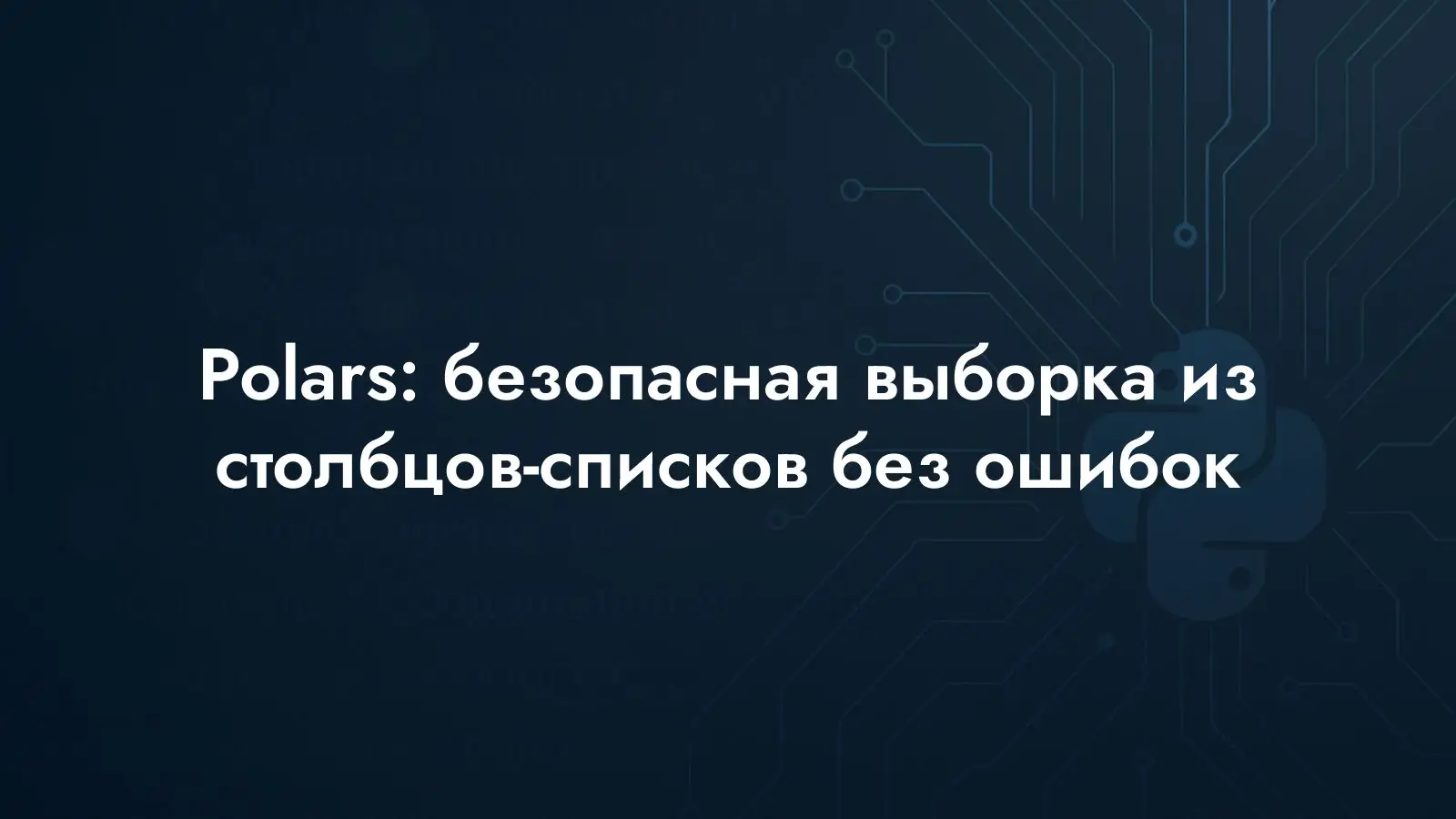 Делая выборку из столбцов-списков в Polars, избегайте фиксированного n, которое может оказаться больше доступной «популяции». Либо перемешивайте и обрезайте, либо делайте n условным. Разбейте список с помощью list.head, list.tail и list.slice, используйте list.sample с fraction=1, shuffle=True, чтобы безопасно перемешать сегмент, и переключайтесь между исходным и собранным результатом через when/then. Завершайте list.unique, когда нужно удалить дубликаты в итоговой выборке.