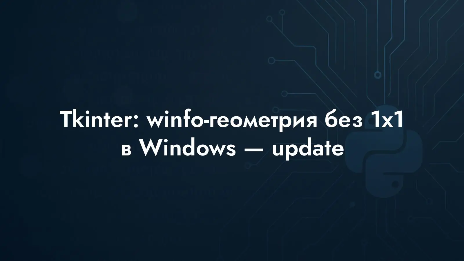 Запрашивайте геометрию только после того, как Tk завершил раскладку. Перед вызовами методов winfo_… используйте update_idletasks() или update(); если нужен желаемый (целевой) размер, а не окончательный, полагайтесь на winfo_reqwidth() и winfo_reqheight(). В Windows замена update_idletasks() на update() устраняет случай, когда виджеты после раскладки всё ещё сообщают 1x1+0+0. Помня об этом, вы сможете создавать кроссплатформенные интерфейсы Tkinter, которые с момента появления сообщают согласованные размеры.