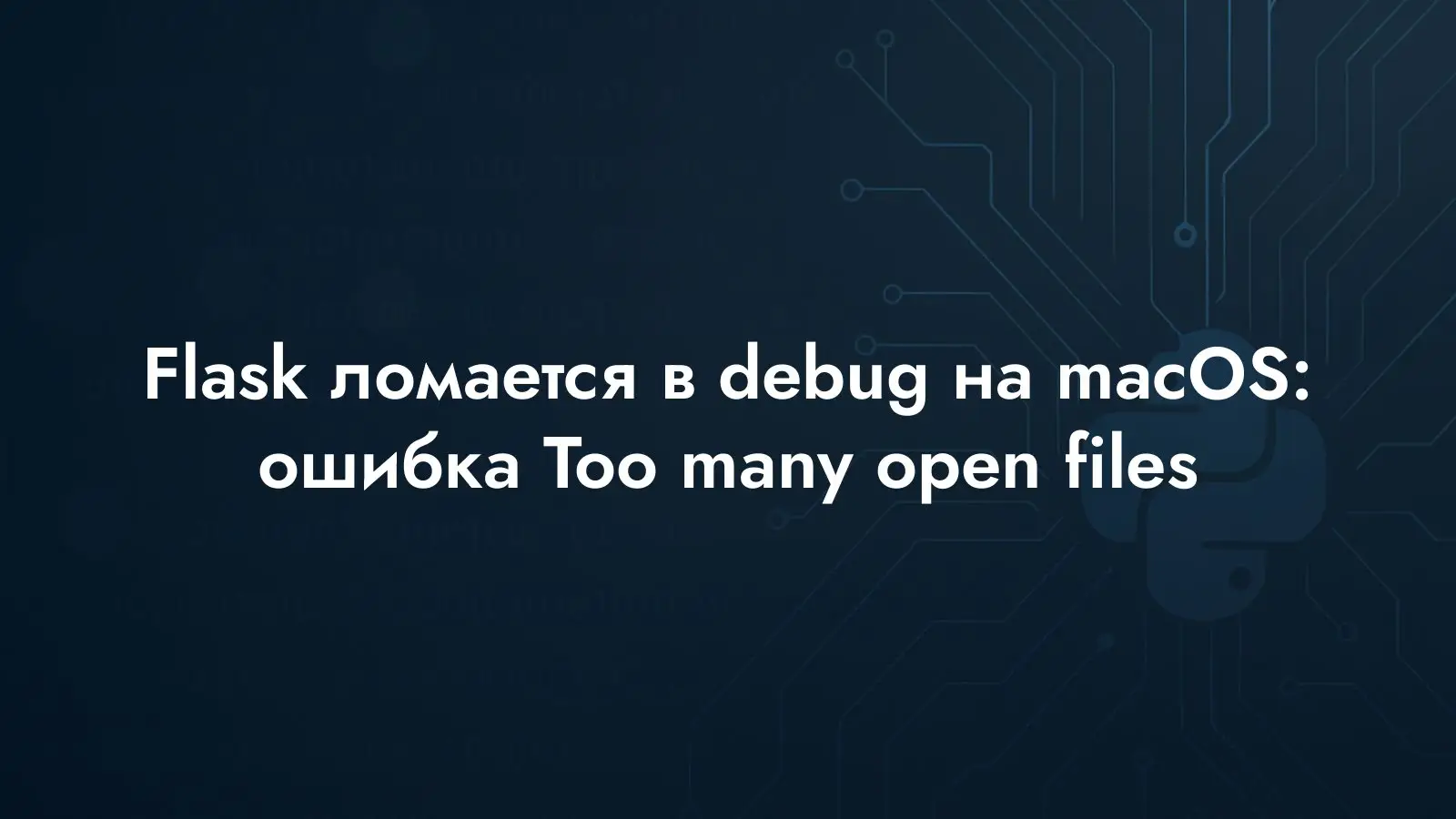 Когда минимальное приложение Flask нормально запускается с flask run, но ломается при flask run --debug, это может сбивать с толку. На macOS 15.5 с Python 3.12.7 и Flask 3.0.3 запуск в режиме отладки вывел предупреждение наблюдателя файловой системы, а после загрузки страницы всё упало с OSError: Too many open files. Источником проблемы оказалась виртуальная среда Python.