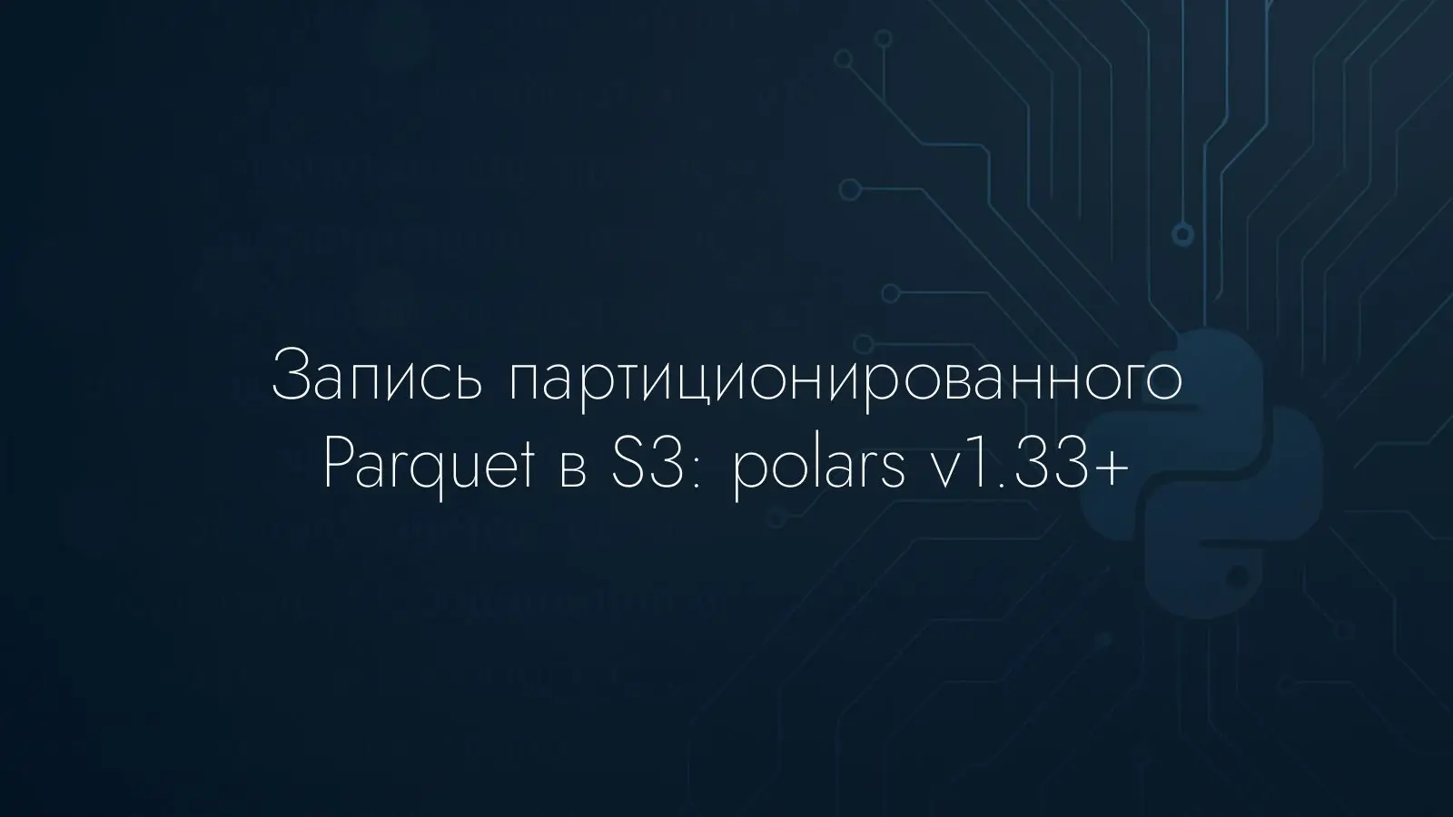 Если при записи партиционированного Parquet в S3 вы видите либо остатки локальной подготовки, либо ошибку ACCESS_DENIED при multipart‑загрузке, проверьте свою версию polars. Обновление до v1.33 и новее решает проблему как для «жадного» пути записи, так и для «ленивого» sink‑пути. За фоном и историей обратитесь к публичным тредам polars#23114 и polars#23221.