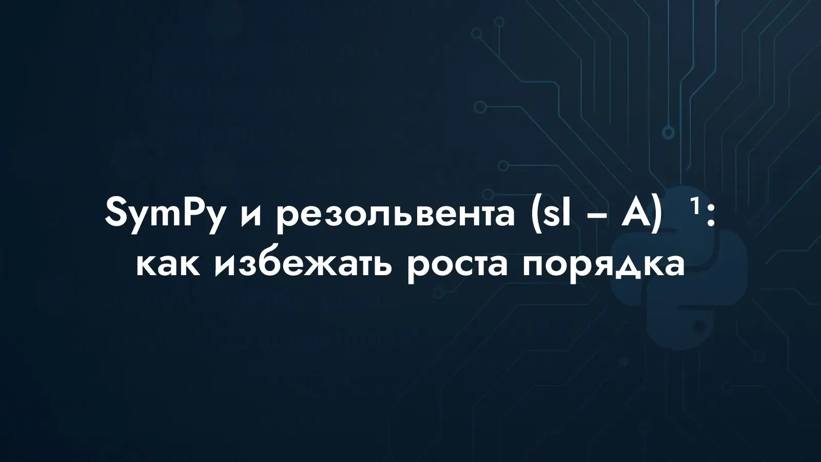 SymPy и проектирование систем управления часто сходятся в одной точке: вычислении резольвенты (sI − A)⁻¹ — матрицы, которую многие инженеры неформально называют матрицей перехода состояния в области Лапласа. Когда символическая алгебра сталкивается с арифметикой плавающей точкой, возникает неожиданная ловушка. В зависимости от выбранного способа обращения одна и та же программа может породить выражения с резко различным видимым порядком, что мешает упрощению и анализу передаточных функций. Разберёмся, что происходит и как сделать алгебру устойчивой.