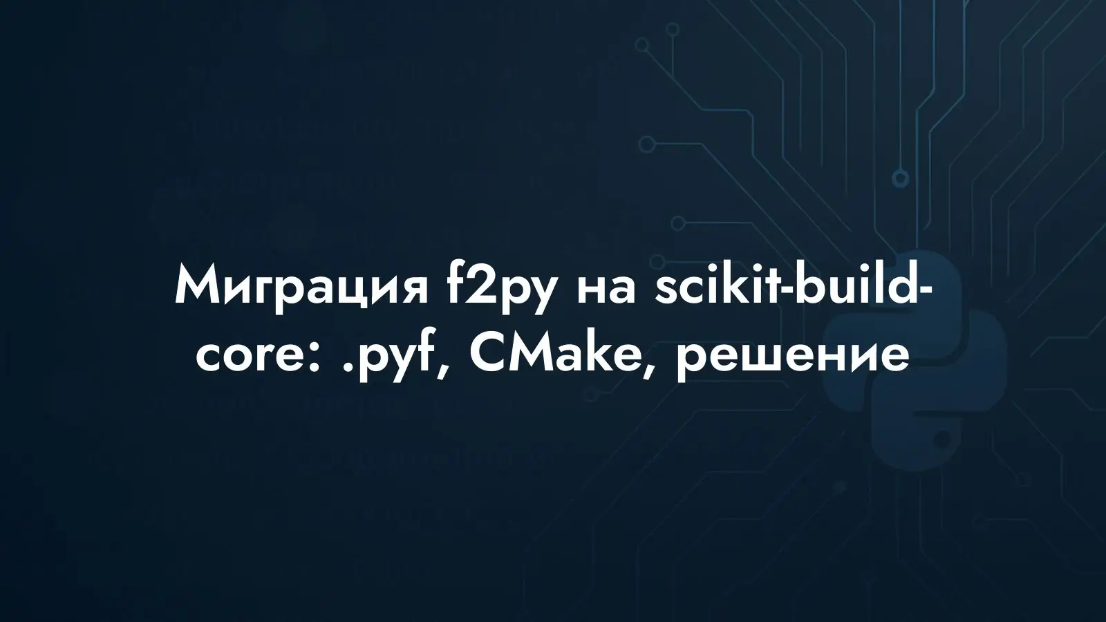 Перенося Fortran-расширение на scikit-build-core, убедитесь, что в цепочке компиляции используется numpy.f2py -c с вашим .pyf и исходниками, а в CMake именно этот шаг формирует финальную библиотеку. Если сборка подвисает или не завершается, добавьте meson в требования build-system — это может снять блокировку. При такой настройке экспортируемые Python-сигнатуры соответствуют спецификации .pyf, и модуль работает как задумано.